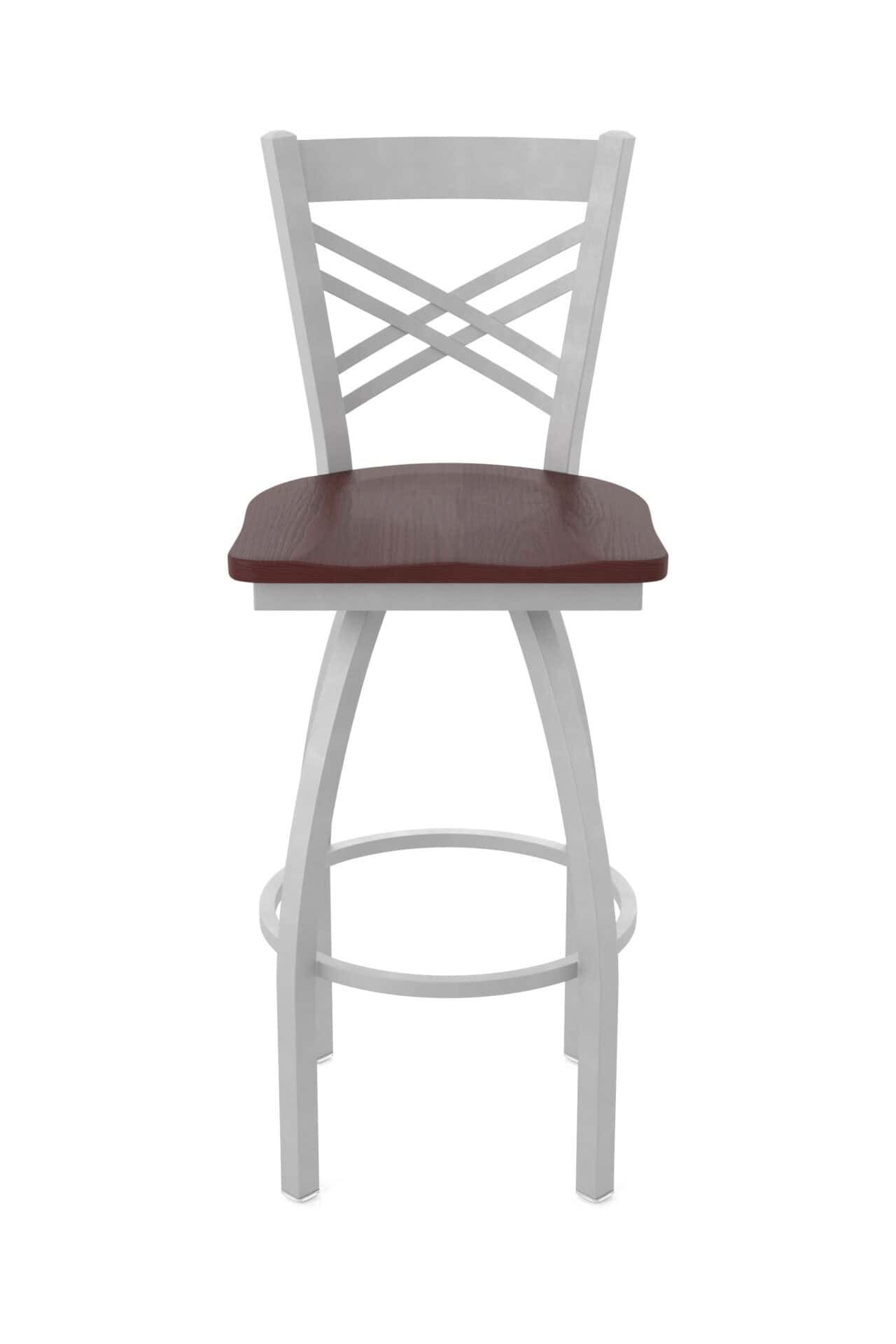 This 36-Inch Cross Back Bar Stool combines classic design with robust construction, making it a perfect addition to any bar or dining area. Its anodized nickel finish and dark cherry oak seat provide a touch of sophistication, while the steel frame ensures lasting durability. Experience exceptional comfort and timeless style with this meticulously crafted bar stool.