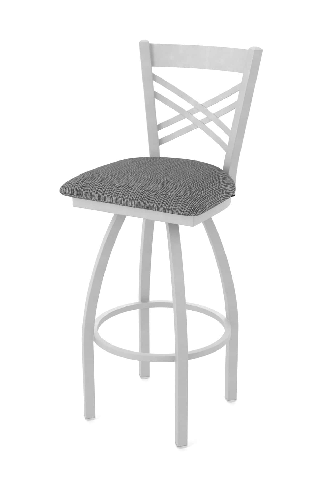 The 36-Inch Cross Back Bar Stool combines enduring construction with sophisticated design, making it an ideal addition to any bar or dining area. Its robust steel frame, coupled with a comfortably padded seat and smooth swivel, ensures both longevity and a pleasurable seating experience. This stool is crafted for those who appreciate quality and style.