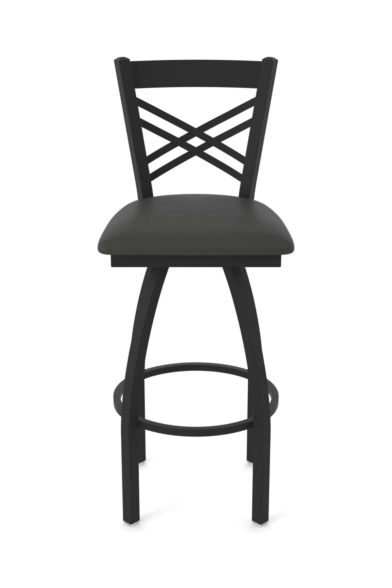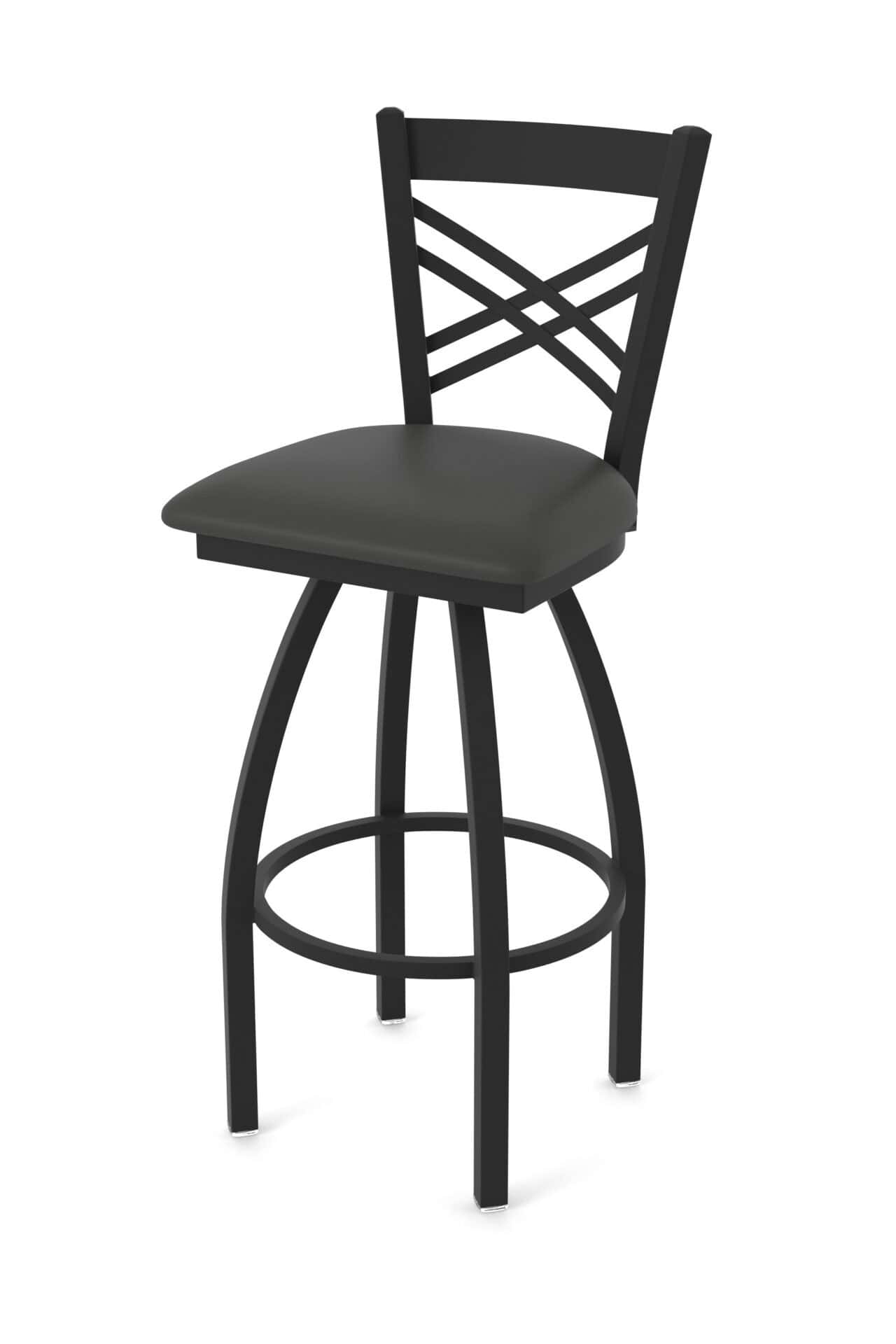 Elevate your bar area with the 36-Inch Cross Back Bar Stool. This extra-tall bar stool combines robust construction with a stylish design, perfect for creating a comfortable and sophisticated seating experience. Its steel frame ensures durability, while the canter iron seat adds a touch of rustic charm. The single-ring base provides stability, making it an ideal addition to any man cave or bar setting.