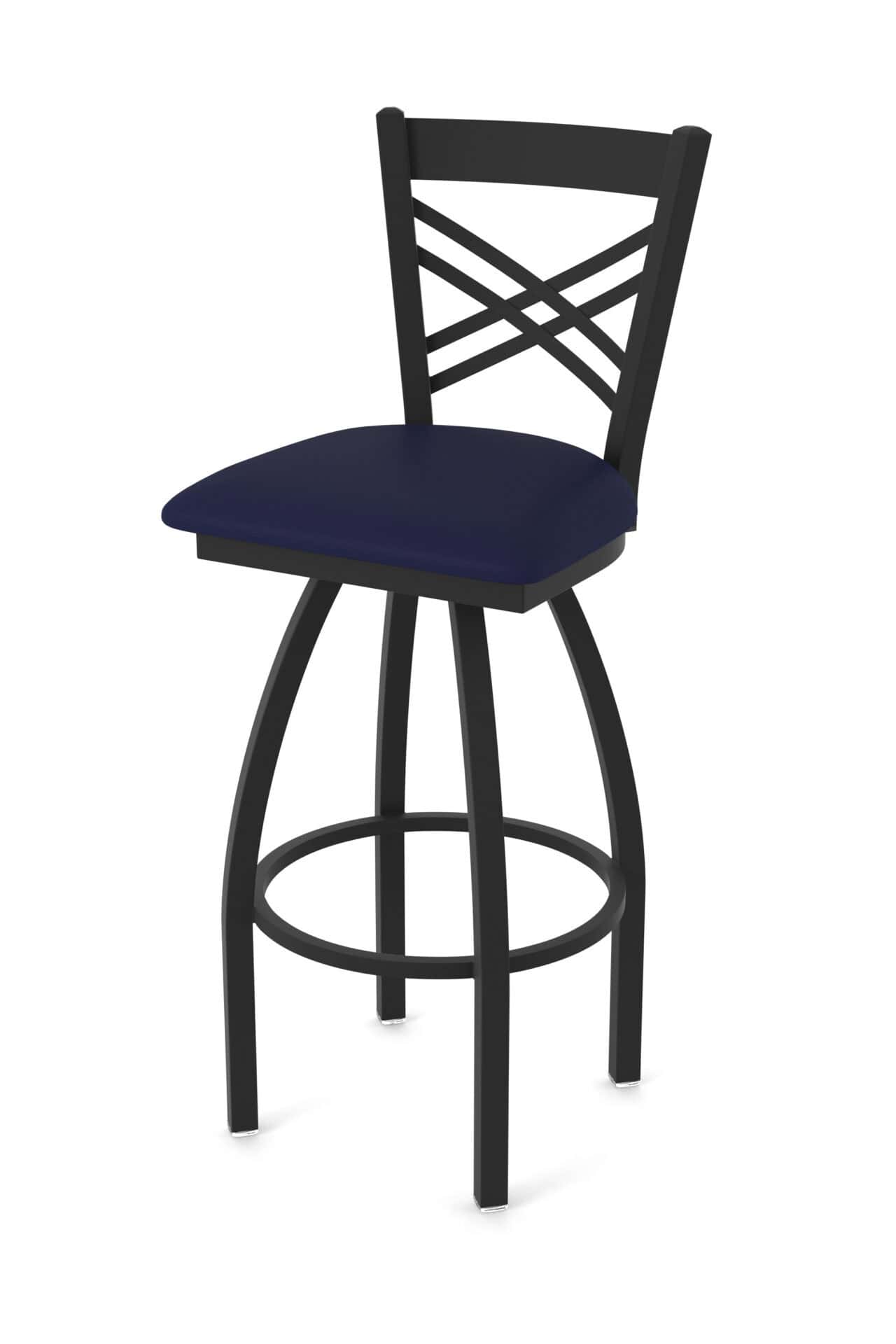 This 36-Inch Cross Back Bar Stool is built for both style and durability. The steel frame ensures lasting stability, while the Canter Twilight seat offers exceptional comfort. Its swivel feature and design make it a perfect addition to any bar area.