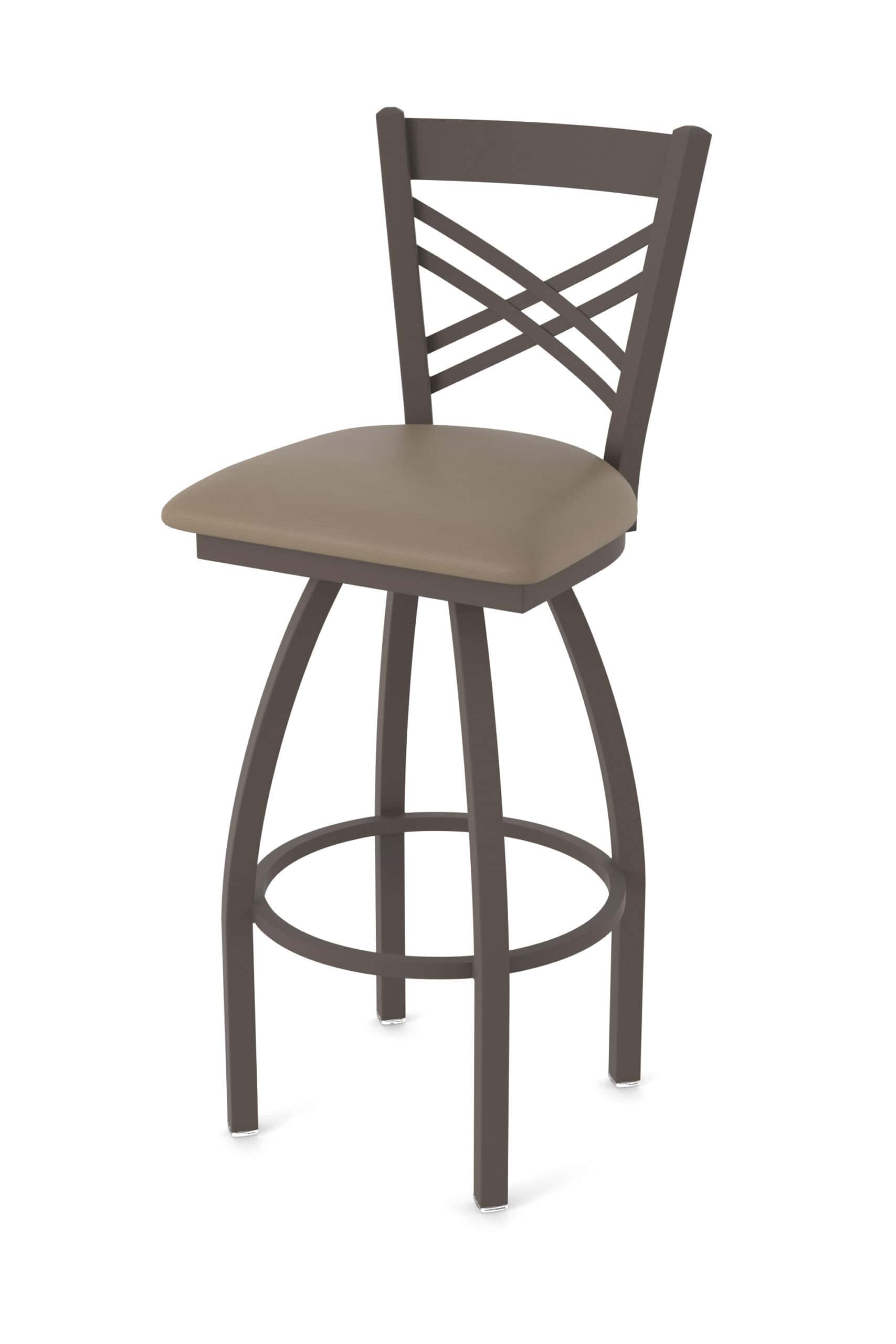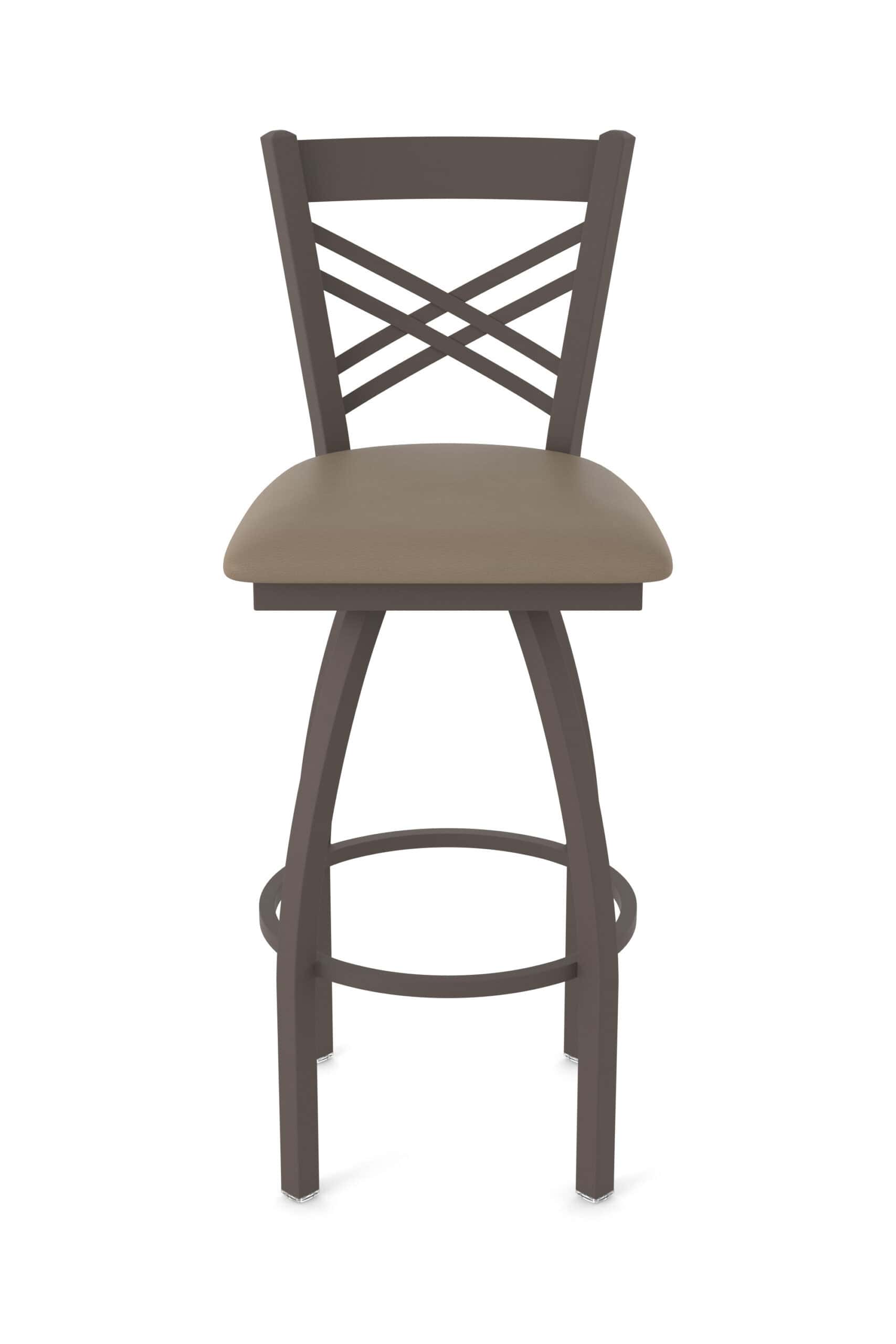 This 36-Inch Cross Back Bar Stool is the ultimate addition to your man cave! Boasting a rugged steel frame with a sleek bronze finish, this stool is built for both comfort and durability. The Canter Earth seat provides a plush, inviting spot to kick back, while the single-ring base adds stability and style. Get ready to elevate your bar area with a stool that’s as tough as it is handsome!