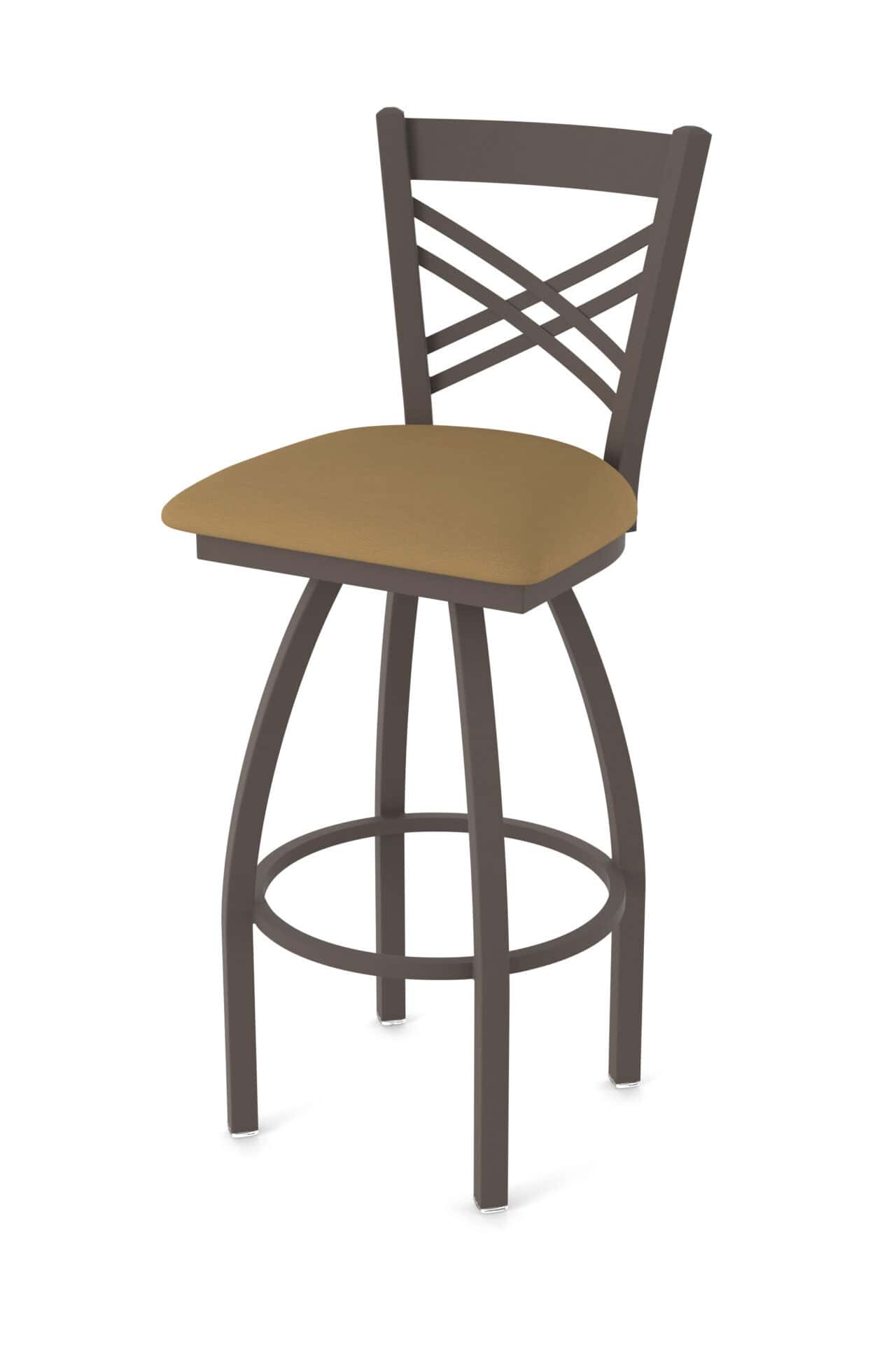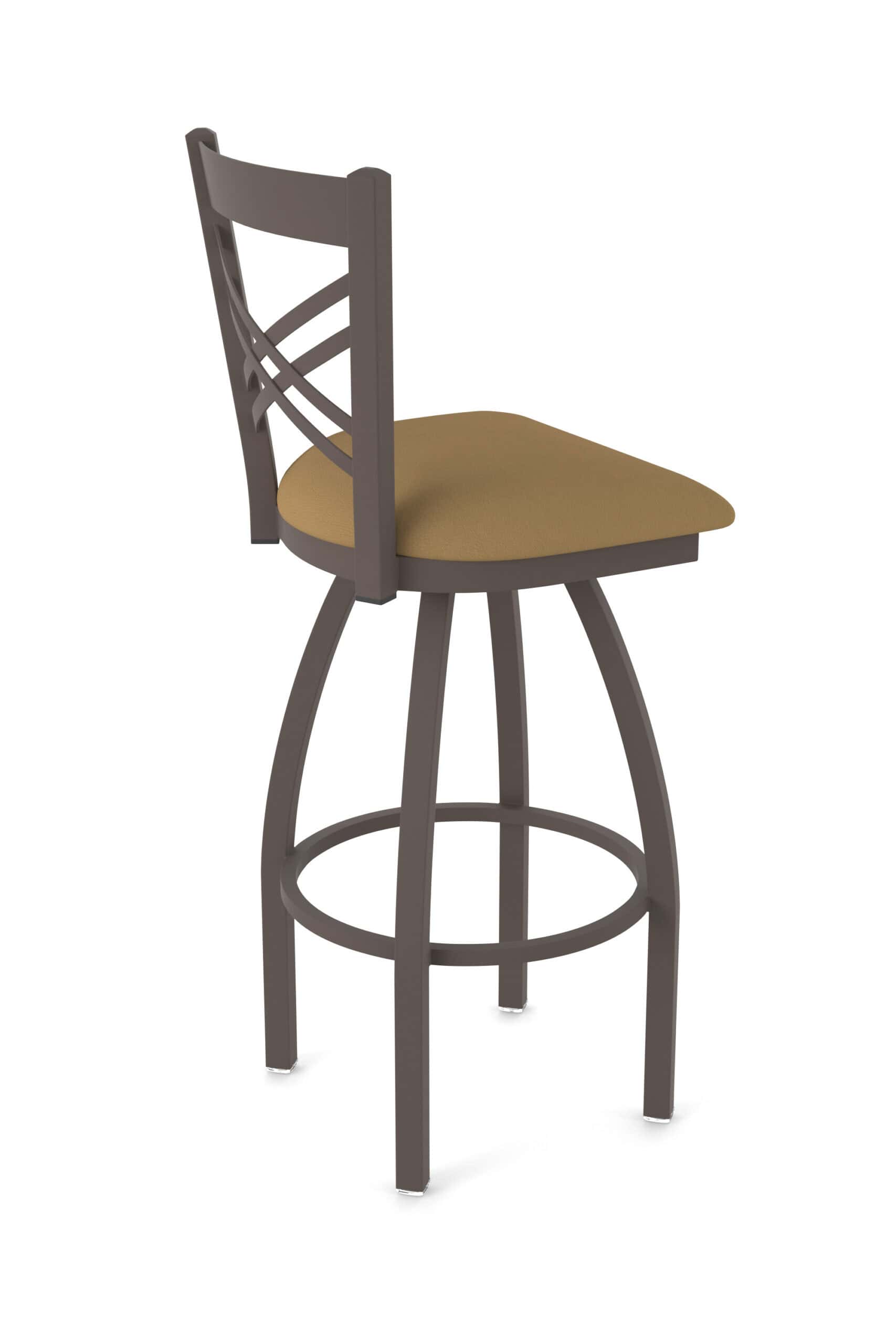 This 36-Inch Cross Back Bar Stool combines classic design with durable construction, making it a perfect addition to any bar or dining area. Its bronze finish and canter saddle seat offer both style and comfort, while the steel frame ensures long-lasting stability. This stool is designed to provide exceptional back support and a comfortable seating experience, whether for quick chats or extended gatherings.