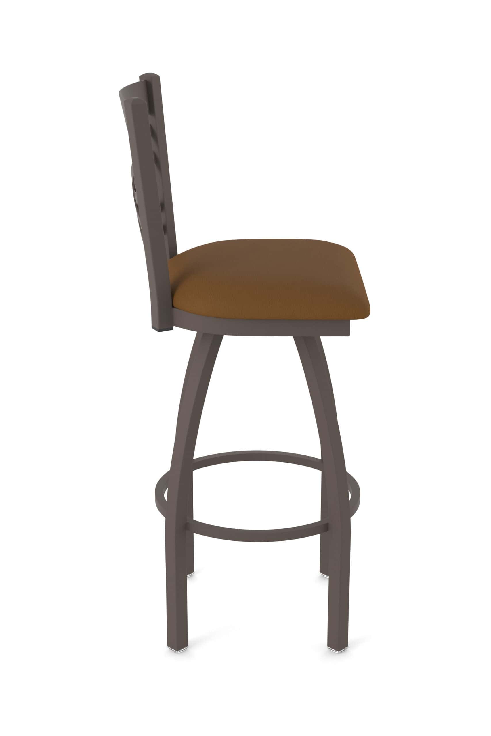 This stool provides superb back support for exceptional comfort. The frame is made from commercial quality 16 gauge, 1 1/4 inch tube steel with solid mig welded joints to guarantee strength and durability. The powder coated finish resists chips and scratches and ensures a long-lasting, rich appearance. The cushion seats are of the highest quality as well, utilizing a breathable, commercial grade vinyl or fabric. At the heart of the cushion is 2 1/2 inches of highly-dense, US made foam that provides maximum support and will not breakdown in a couple years. You won’t find a higher quality stool on the market. If you are going to finish your bar or dining area – do it right, with a stool.