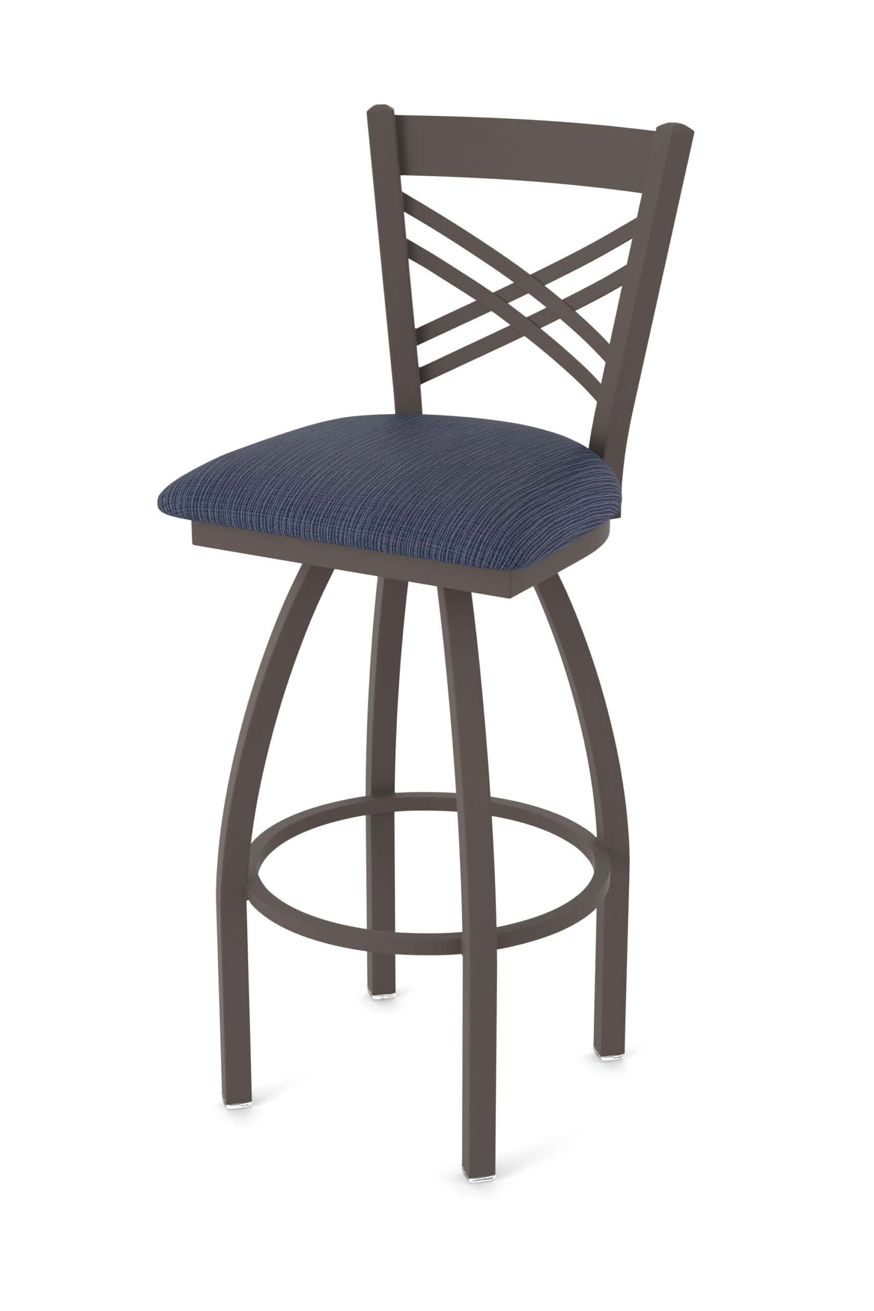 This 36-Inch Cross Back Bar Stool combines classic design with exceptional comfort. Its robust steel frame, finished in bronze, ensures lasting durability, while the upholstered seat provides a comfortable seating experience. Perfect for completing your bar or dining area with style and quality.