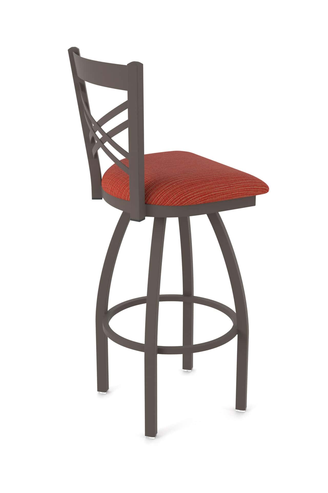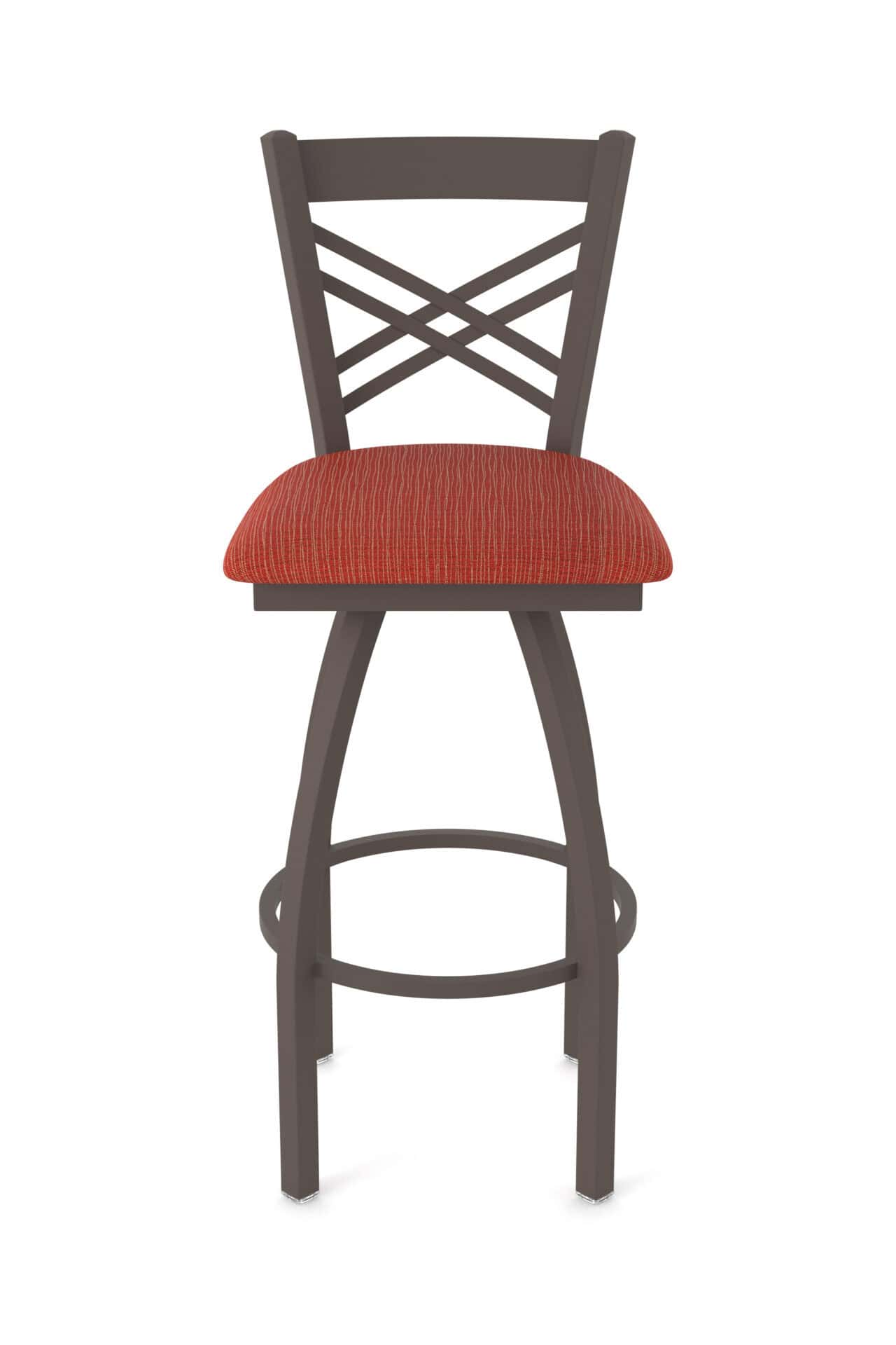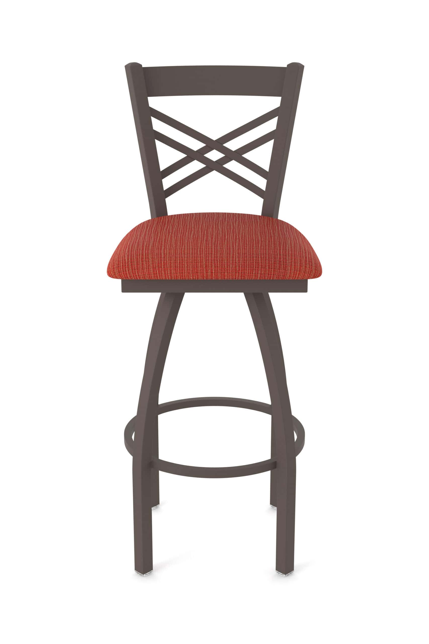 This 36-Inch Cross Back Bar Stool is designed for comfort and durability. Featuring a bronze finish steel frame, a stylish Graph Poppy seat, and a single-ring base, this bar stool will be a great addition to your bar or dining area. Enjoy the superior back support and exceptional comfort provided by this high-quality stool.