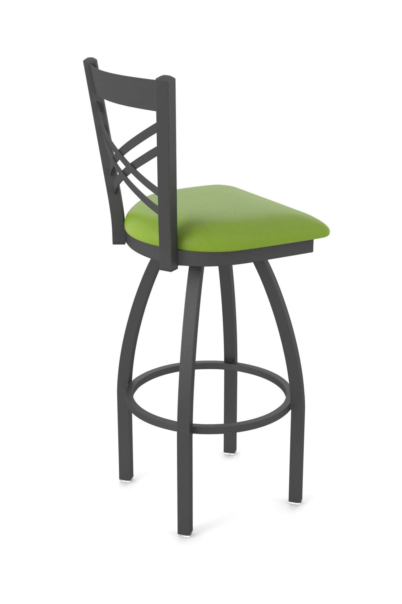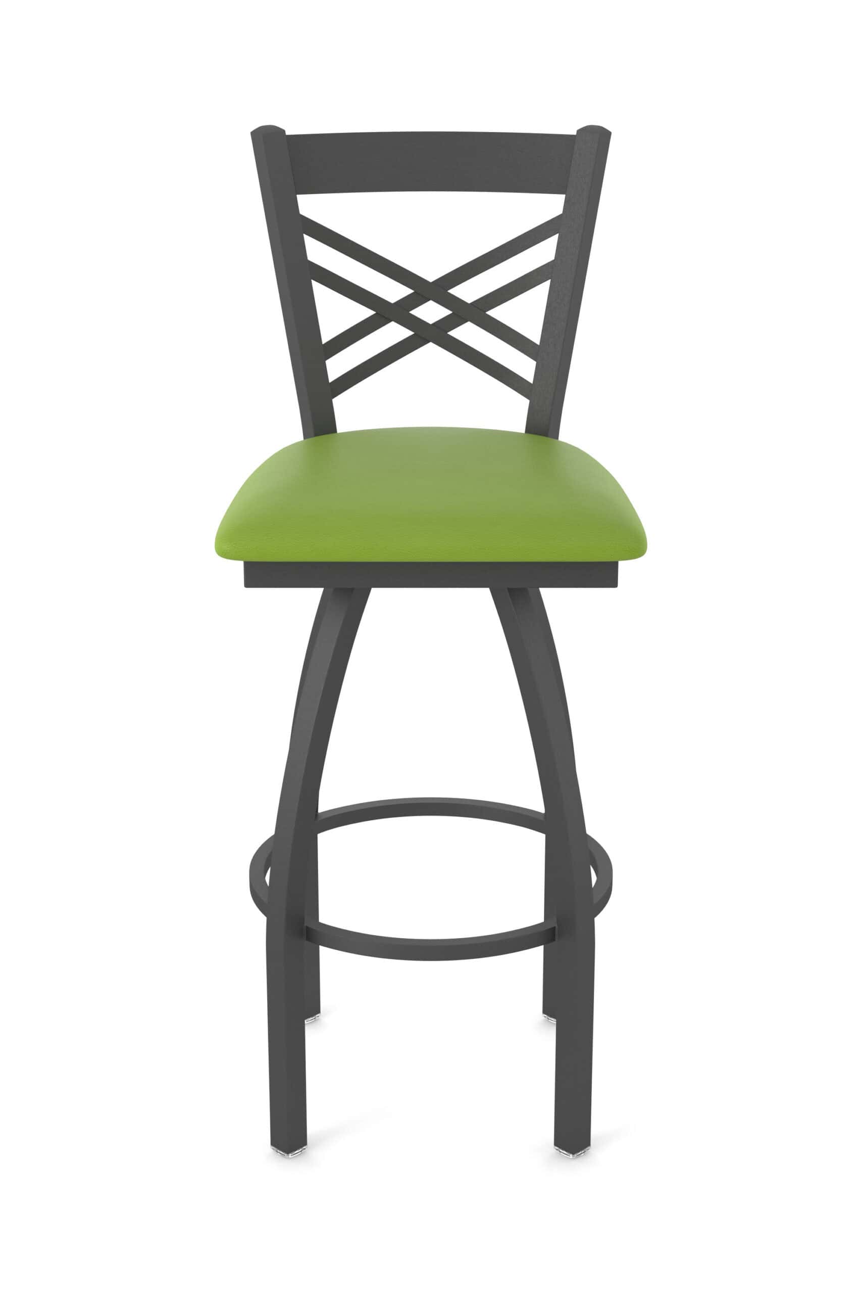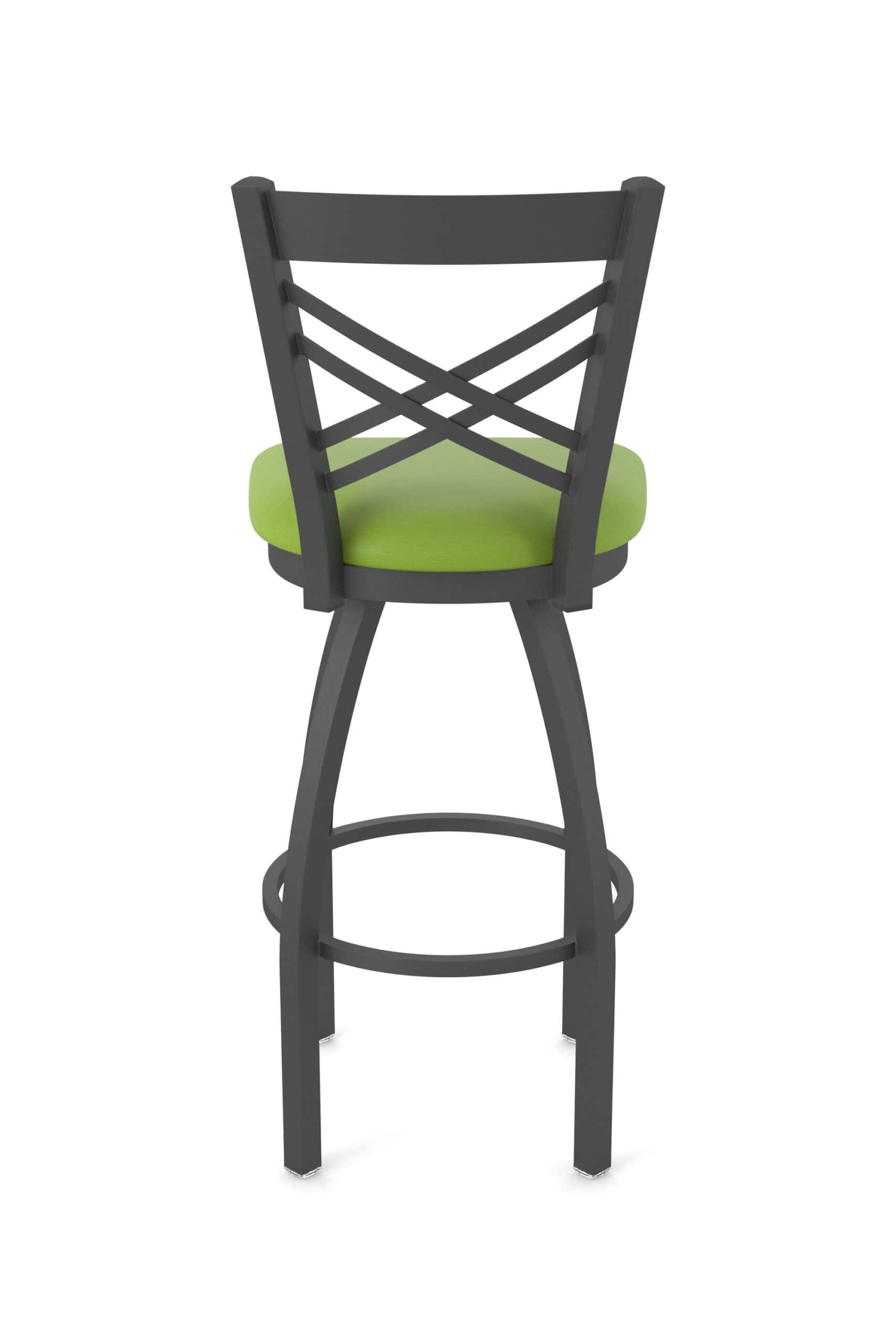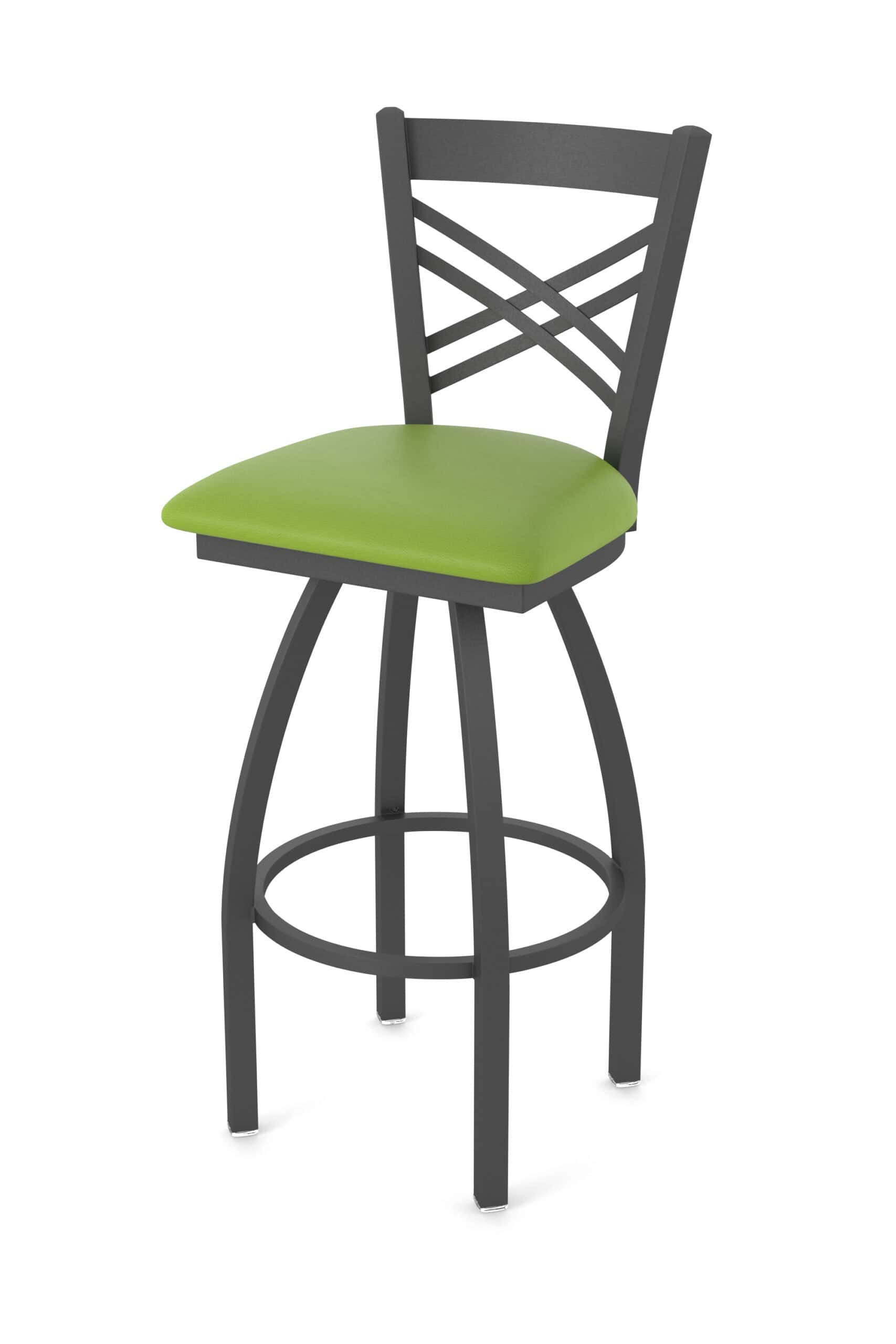 This 36-Inch Cross Back Bar Stool offers a blend of classic design and robust construction, perfect for elevating your bar area. It features a steel frame with a pewter finish, a comfortable Canter Kiwi Green seat, and a sturdy single-ring base. Experience exceptional comfort and style with this bar stool, crafted to provide superb back support and lasting durability.