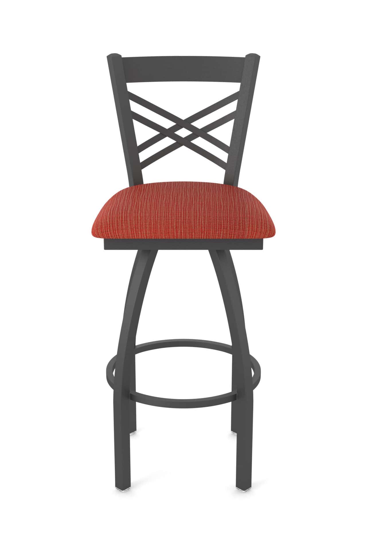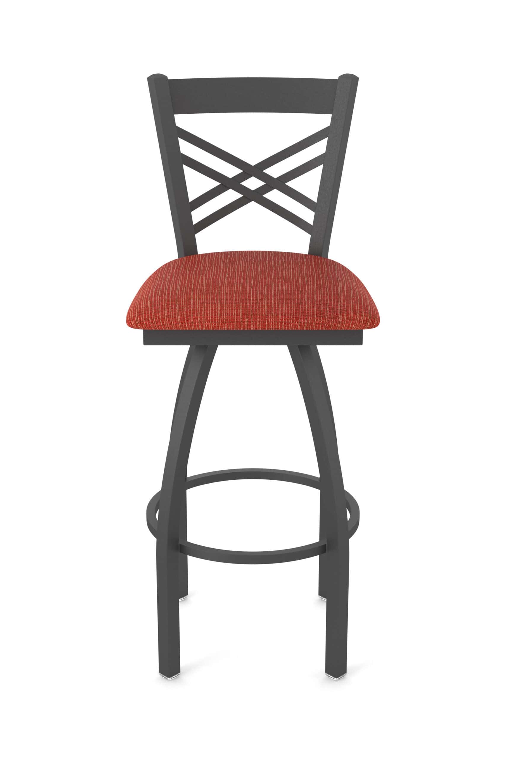 This 36-Inch Cross Back Bar Stool provides both style and comfort to your bar or dining area. Its sturdy steel frame ensures durability, while the Graph Poppy seat offers a comfortable and visually appealing seating experience. The swivel feature and single-ring base add functionality and a touch of elegance to this exceptional piece.