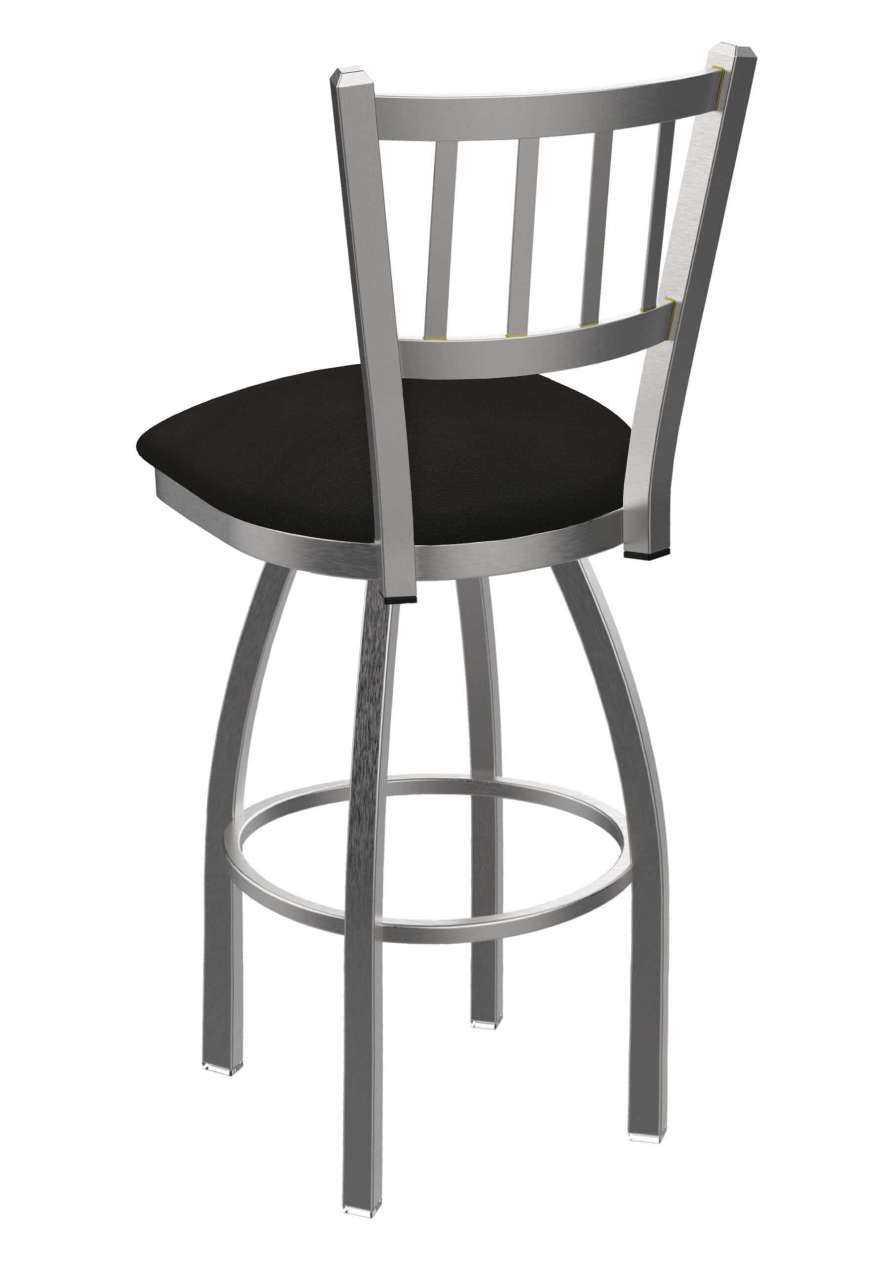 This 36-Inch Jailhouse Back Bar Stool with Stainless Steel Frame offers a contemporary design coupled with exceptional comfort. It features a robust stainless steel frame, a swiveling Canter Espresso seat, and a single-ring base, making it a stylish and durable addition to any bar or dining area. The “Jailhouse” back design provides superb support, ensuring hours of comfortable seating.