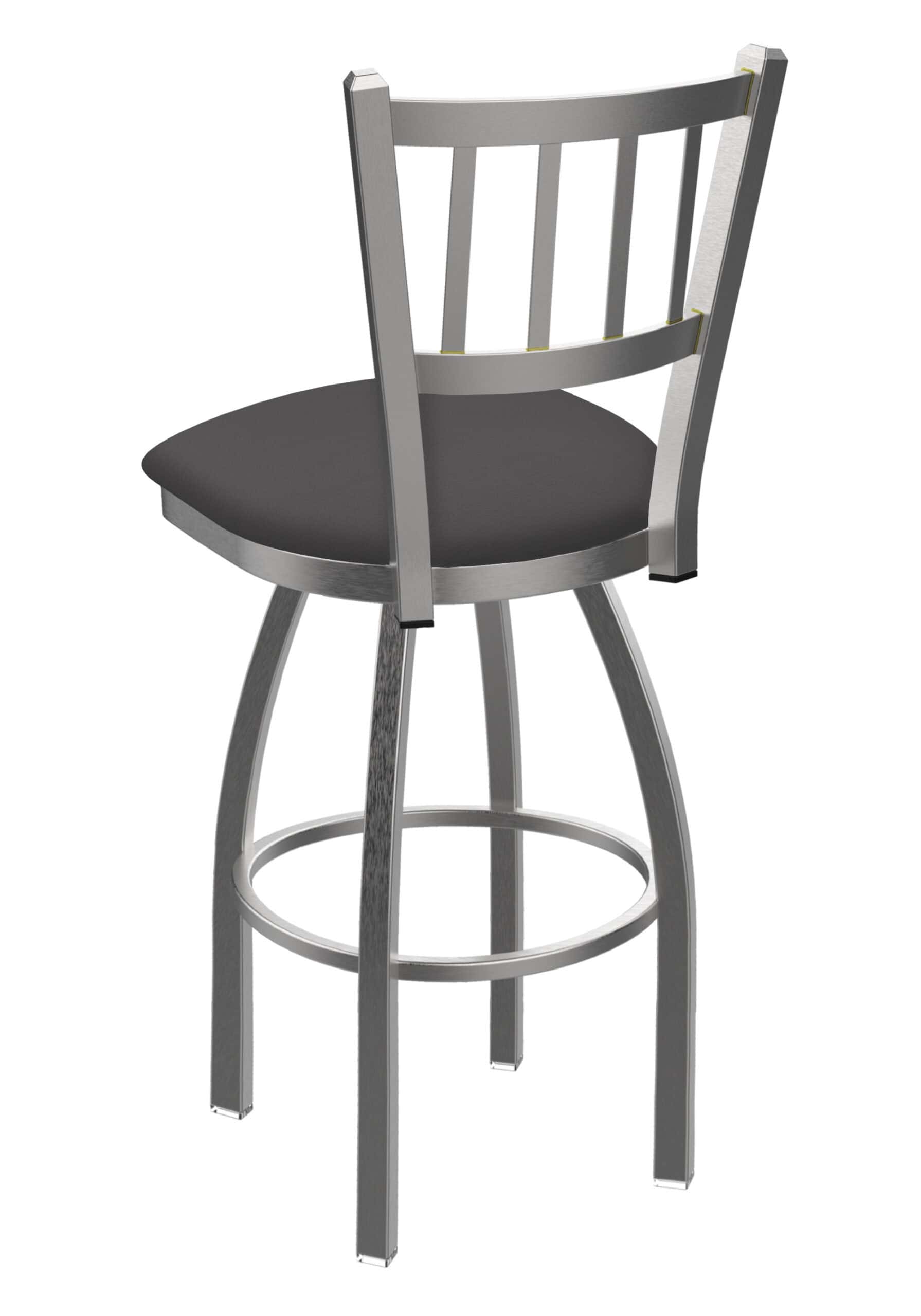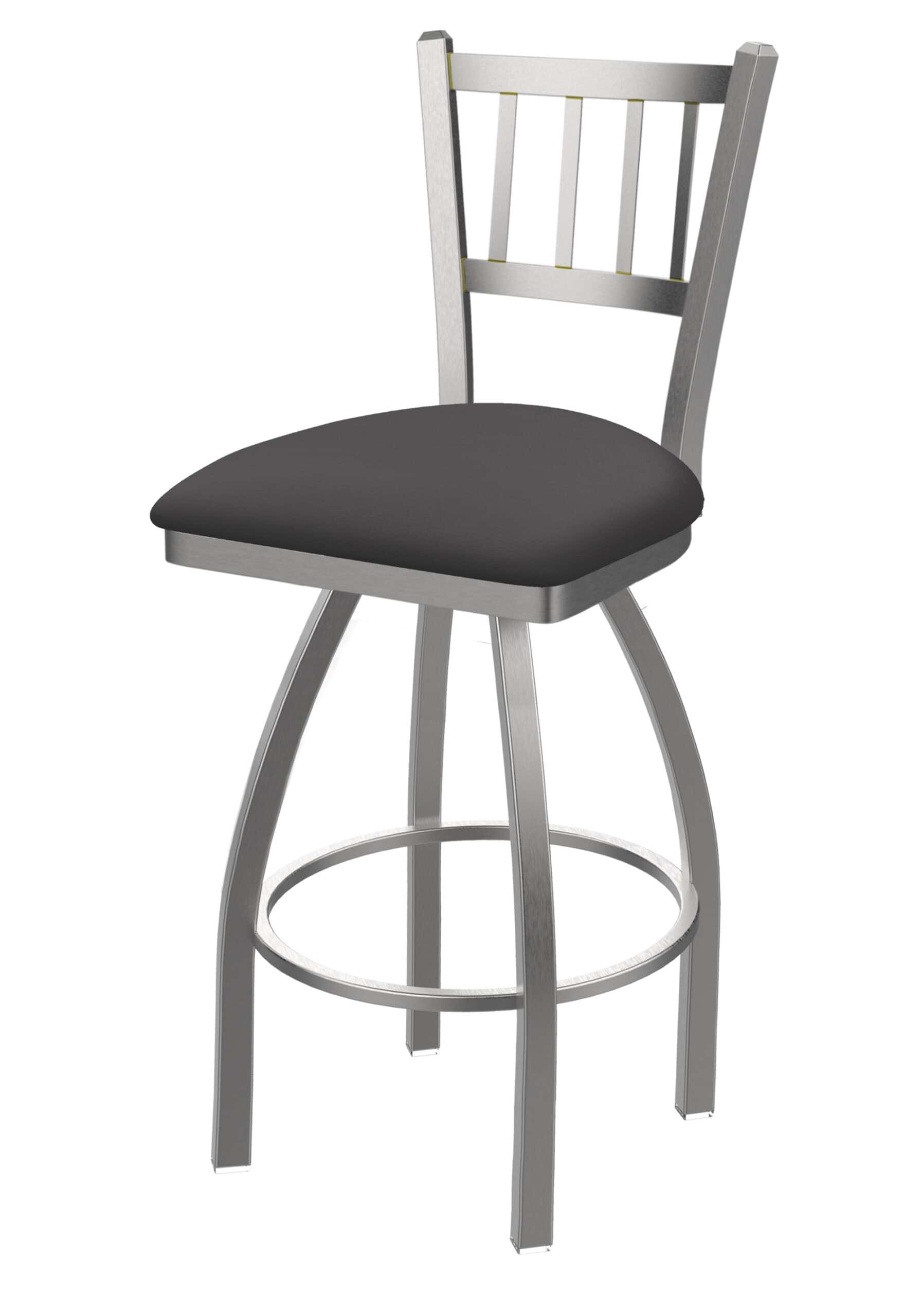 This 36-Inch Jailhouse Back Bar Stool offers a blend of classic design and robust construction, perfect for completing your bar or dining area. The stainless steel frame ensures durability and a sleek, modern look, while the Canter Storm seat provides exceptional comfort. With its single-ring base, this bar stool adds a touch of sophistication to any setting. Enjoy superior back support and a lifetime warranty on the swivel, making it a worthwhile addition to your home.