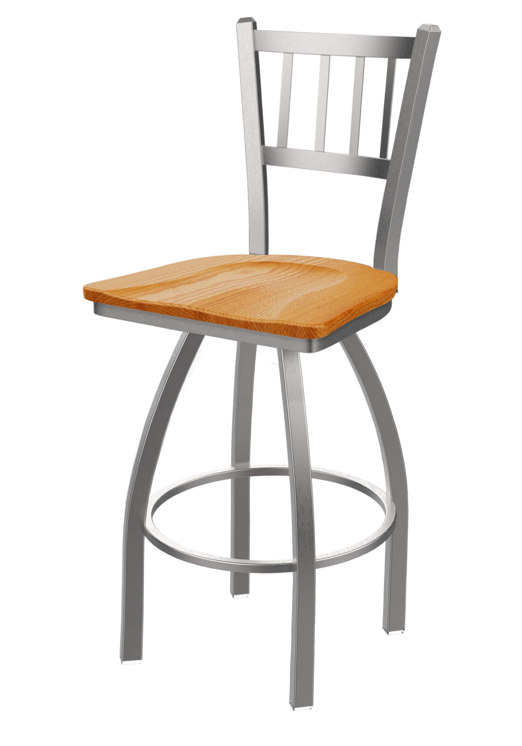 This 36-Inch Jailhouse Back Bar Stool combines a contemporary design with exceptional comfort and durability. The stainless steel frame ensures long-lasting use, while the medium oak seat provides a comfortable and stylish seating experience. Perfect for finishing your bar or dining area with a touch of class.