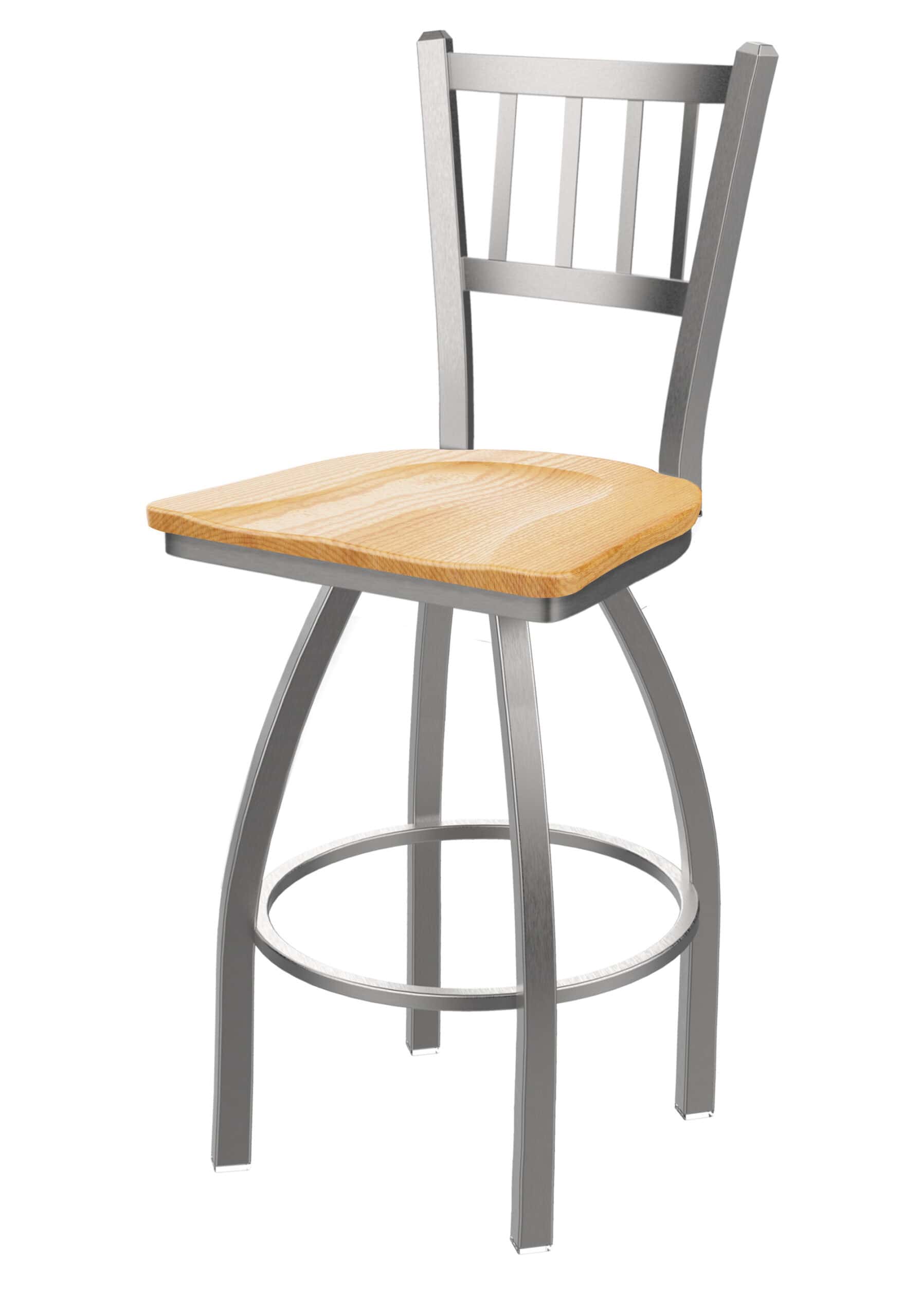 This Stainless Steel swivel bar stool features a contemporary design, providing excellent back support for exceptional comfort. The stainless steel frame is commercial quality, guaranteeing strength and durability. The solid hardwood seat is designed for amazing posterior comfort, making sitting for minutes or hours a pleasure. You won’t find a higher quality stool on the market. If you are going to finish your bar or dining area – do it right, with this stool!