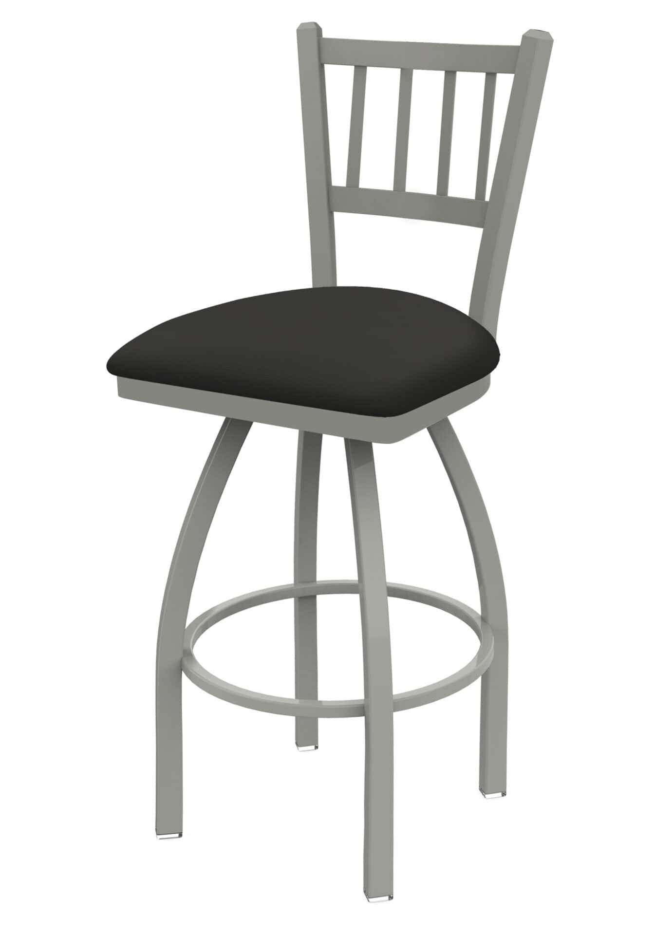 Experience exceptional comfort and style with this 36-Inch Jailhouse Back Bar Stool. Built with a sturdy steel frame and a comfortable Canter Iron seat, this stool provides both durability and support. The anodized nickel finish adds a touch of elegance, making it a perfect addition to any bar area. Enjoy the lifetime warranty swivel and the peace of mind that comes with superior craftsmanship.