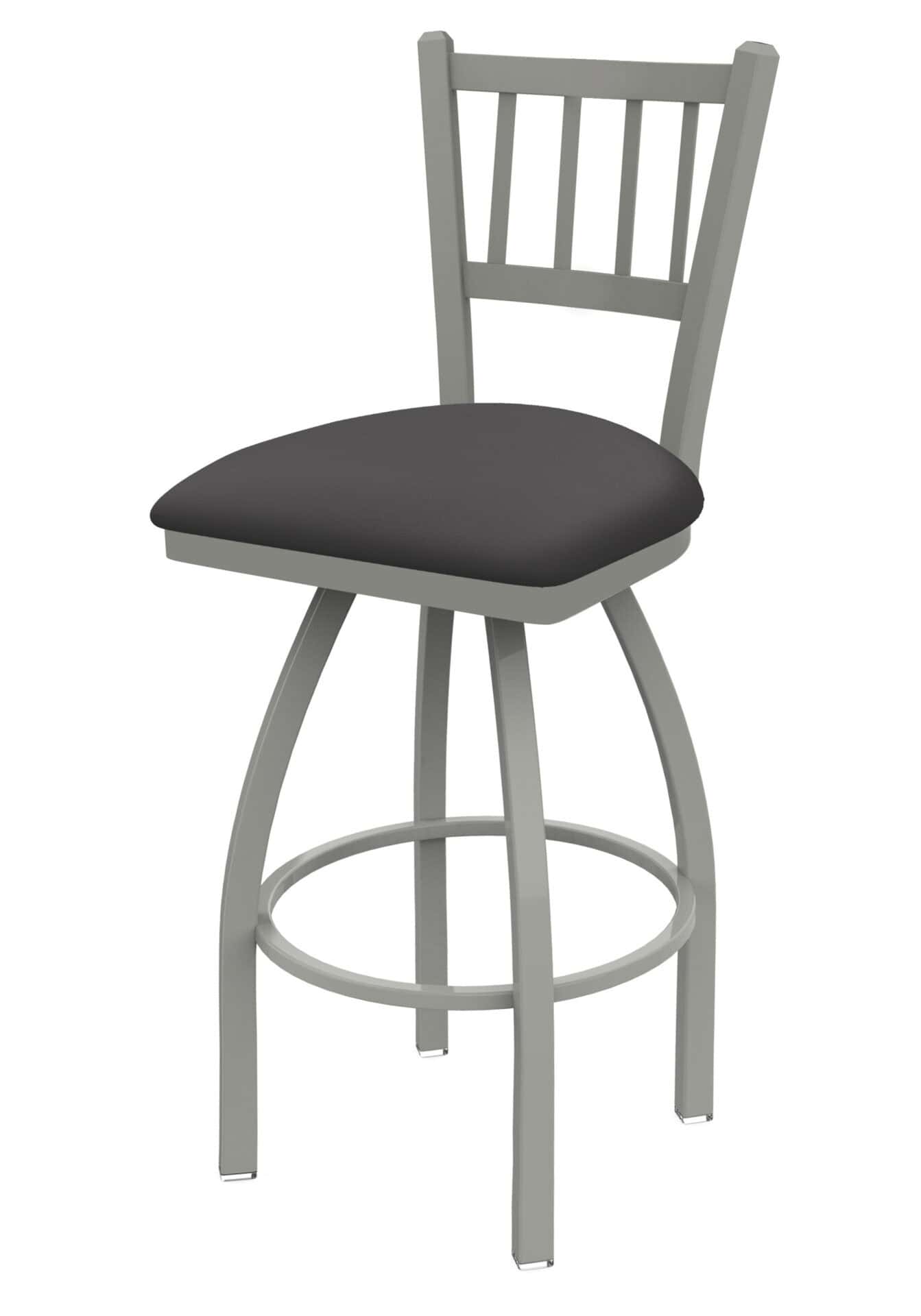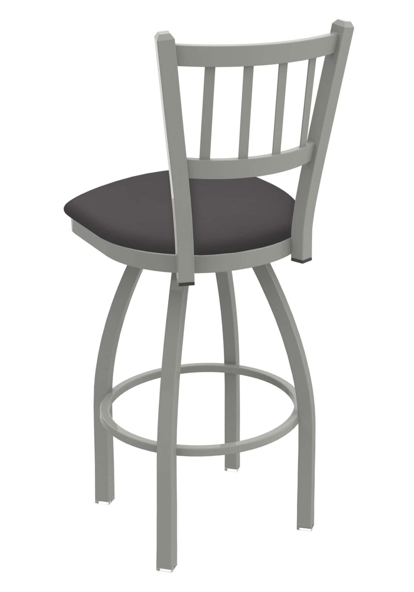 This 36-Inch Jailhouse Back Bar Stool combines robust construction with comfortable design, perfect for completing your bar or dining area. Featuring a durable steel frame with an Anodized Nickel finish, a Canter Storm seat, and a single-ring base, this stool provides both style and support for lasting enjoyment. The padded seat ensures hours of comfortable seating, making it ideal for any home or commercial setting.