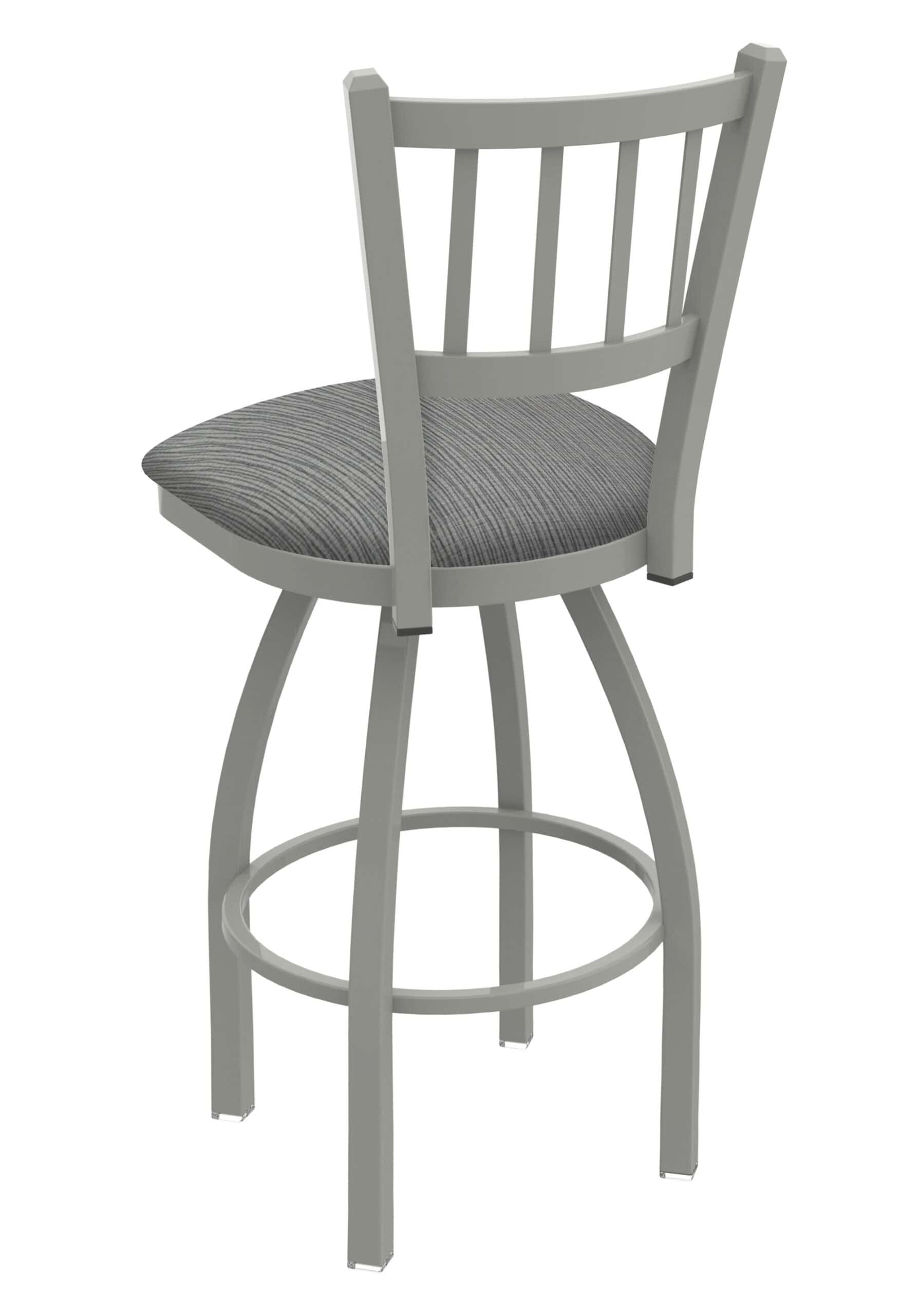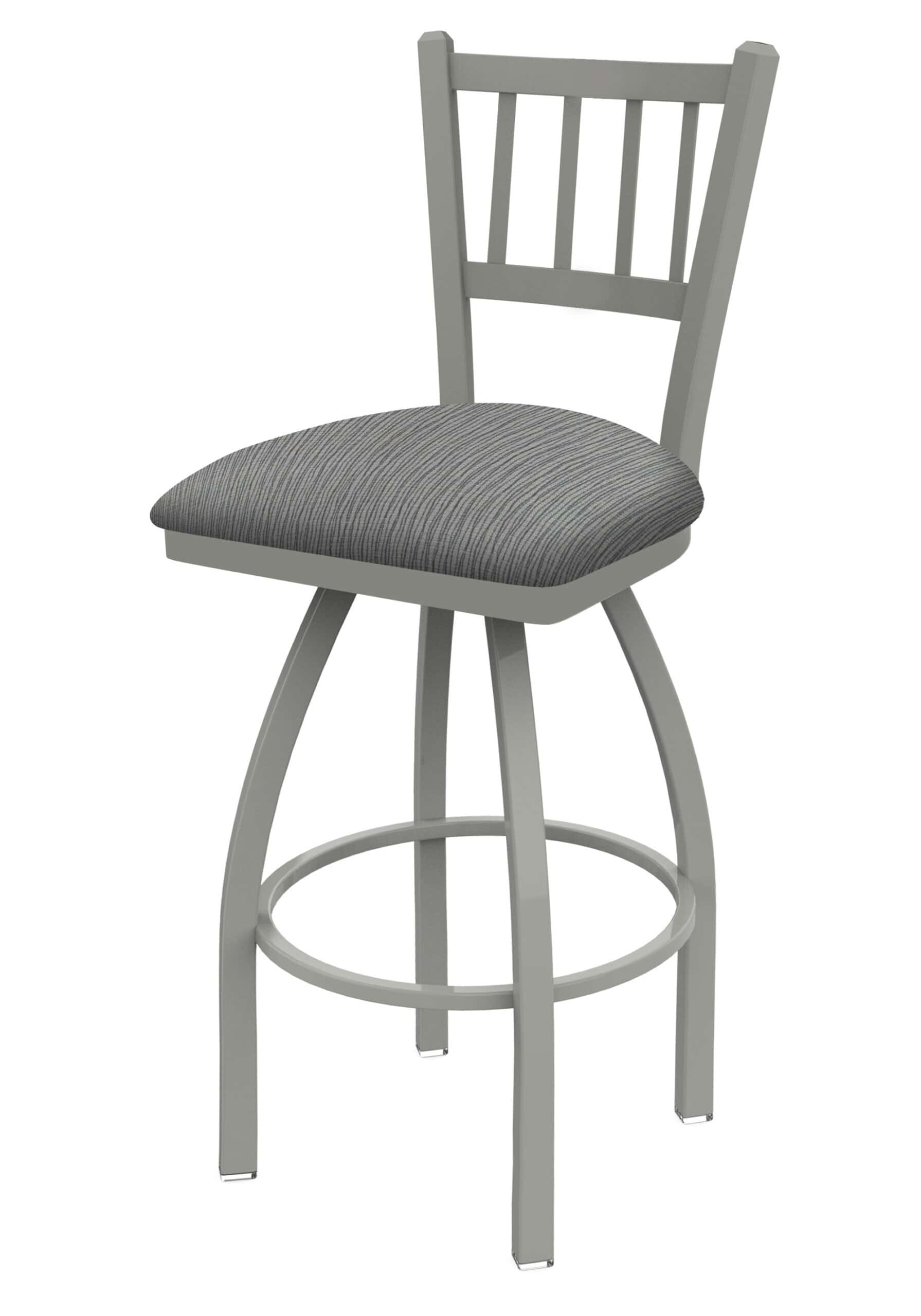 Elevate your bar area with the distinguished 36-Inch Jailhouse Back Bar Stool. This swivel bar stool combines a contemporary design with exceptional comfort and lasting durability. The robust steel frame, finished in anodized nickel, ensures stability, while the generously padded Graph Alpine seat provides superior comfort for extended enjoyment.