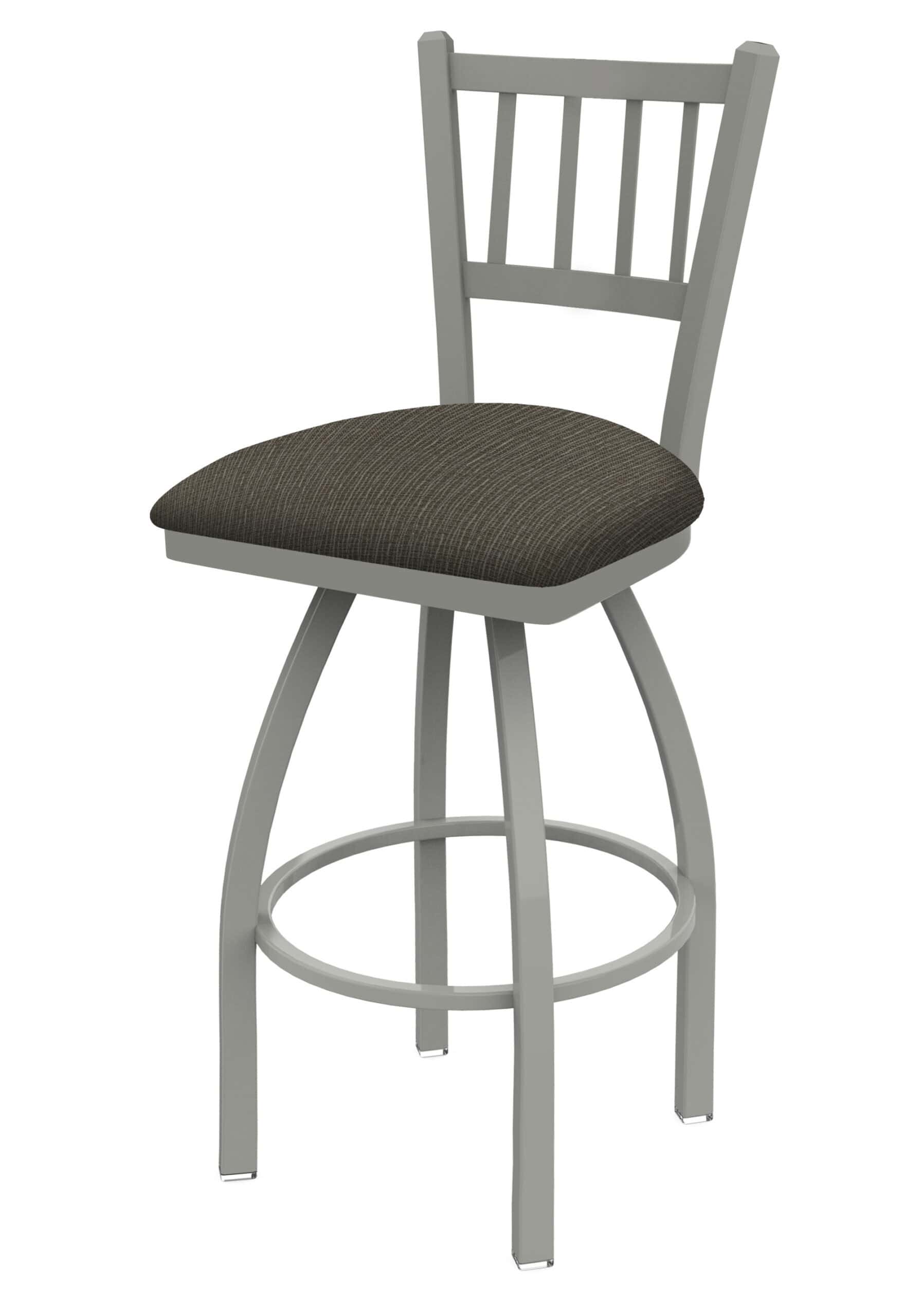 This 36-Inch Jailhouse Back Bar Stool is the perfect addition to your bar or dining area. Enjoy exceptional comfort and timeless style with its steel frame, anodized nickel finish, and Graph Chalice seat. This stool offers superb back support for hours of comfortable seating. Built with commercial quality materials and a durable design, this stool is sure to impress.