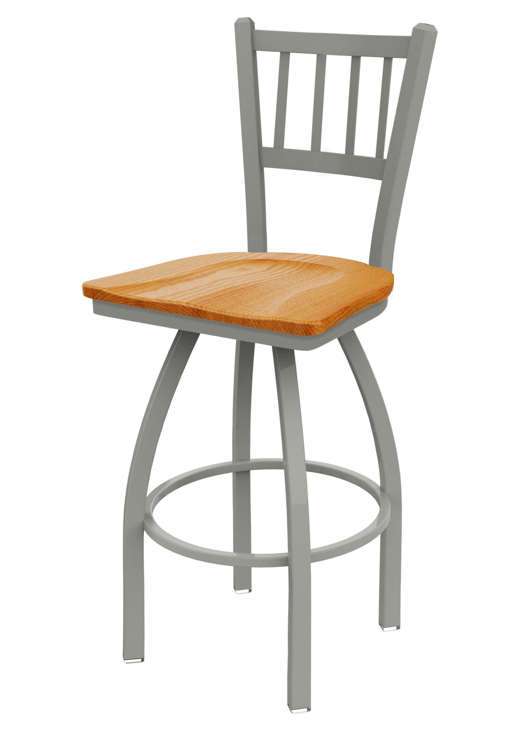 This 36-Inch Jailhouse Back Bar Stool combines classic design with robust construction, making it a perfect addition to your bar or entertainment area. The steel frame, finished in anodized nickel, provides exceptional strength and durability. With a medium oak seat, this stool offers both comfort and style, promising to be a favorite spot for relaxing or socializing.