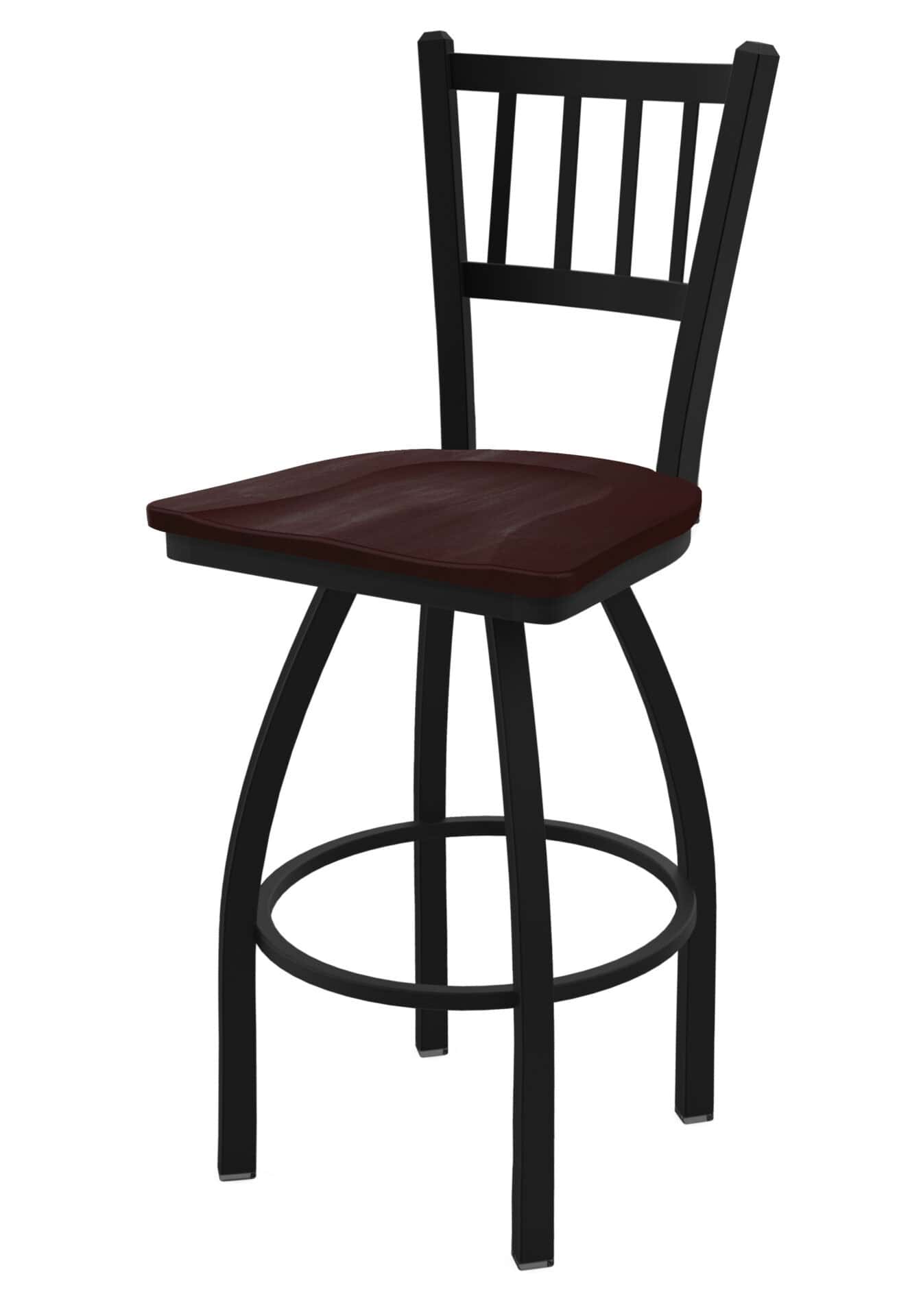 Get ready to amp up your bar area with this 36-Inch Jailhouse Back Bar Stool! This stool isn’t just seating; it’s a statement. With its robust steel frame, dark cherry maple seat, and single-ring base, it’s built for comfort and made to last. The solid construction and quality materials will provide years of enjoyment.