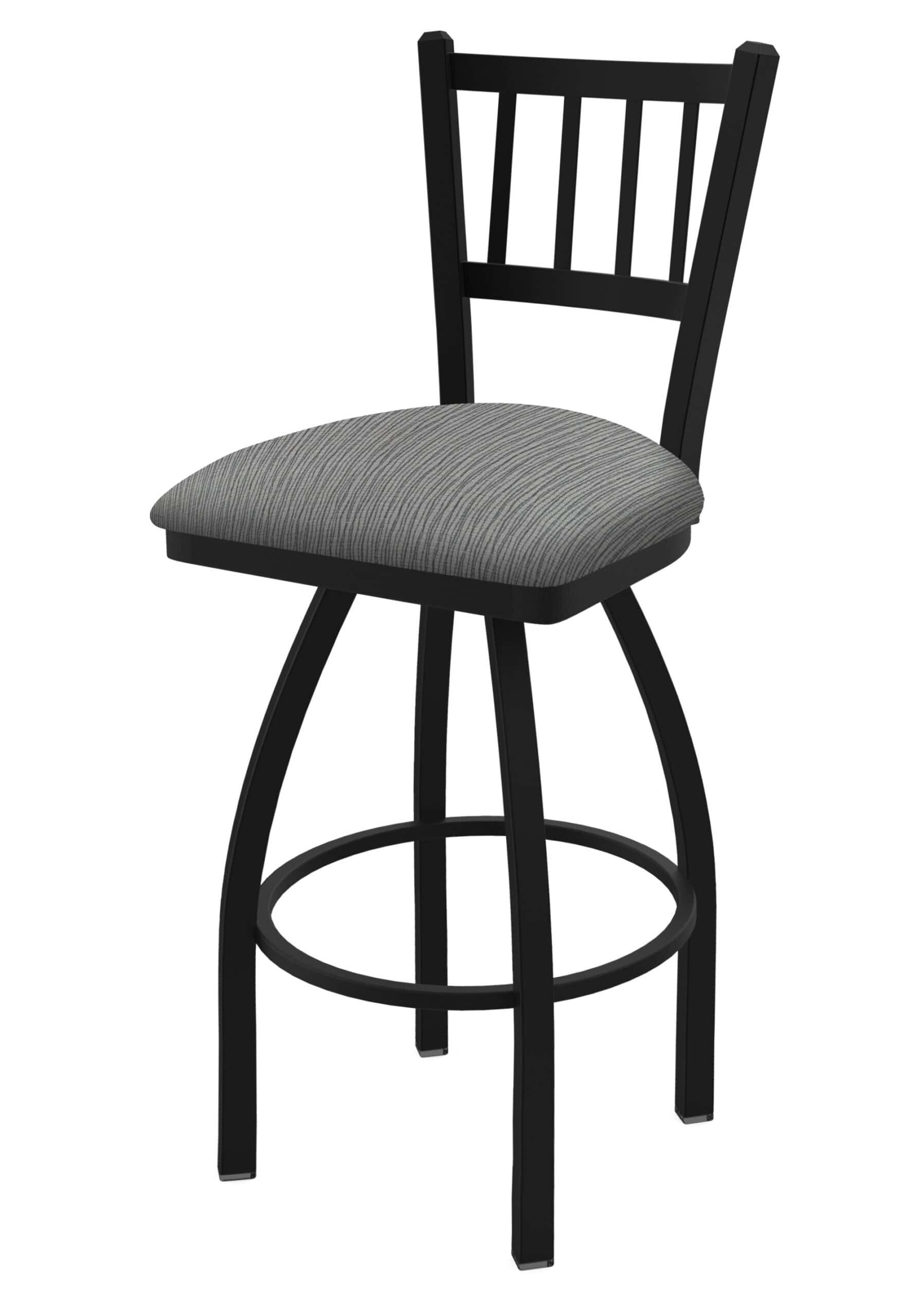 This 36-Inch Jailhouse Back Bar Stool combines contemporary design with exceptional comfort and durability. Featuring a steel frame with a black wrinkle finish and a generously upholstered Graph Alpine seat, this bar stool is built to last and provides superb back support for hours of comfortable seating.