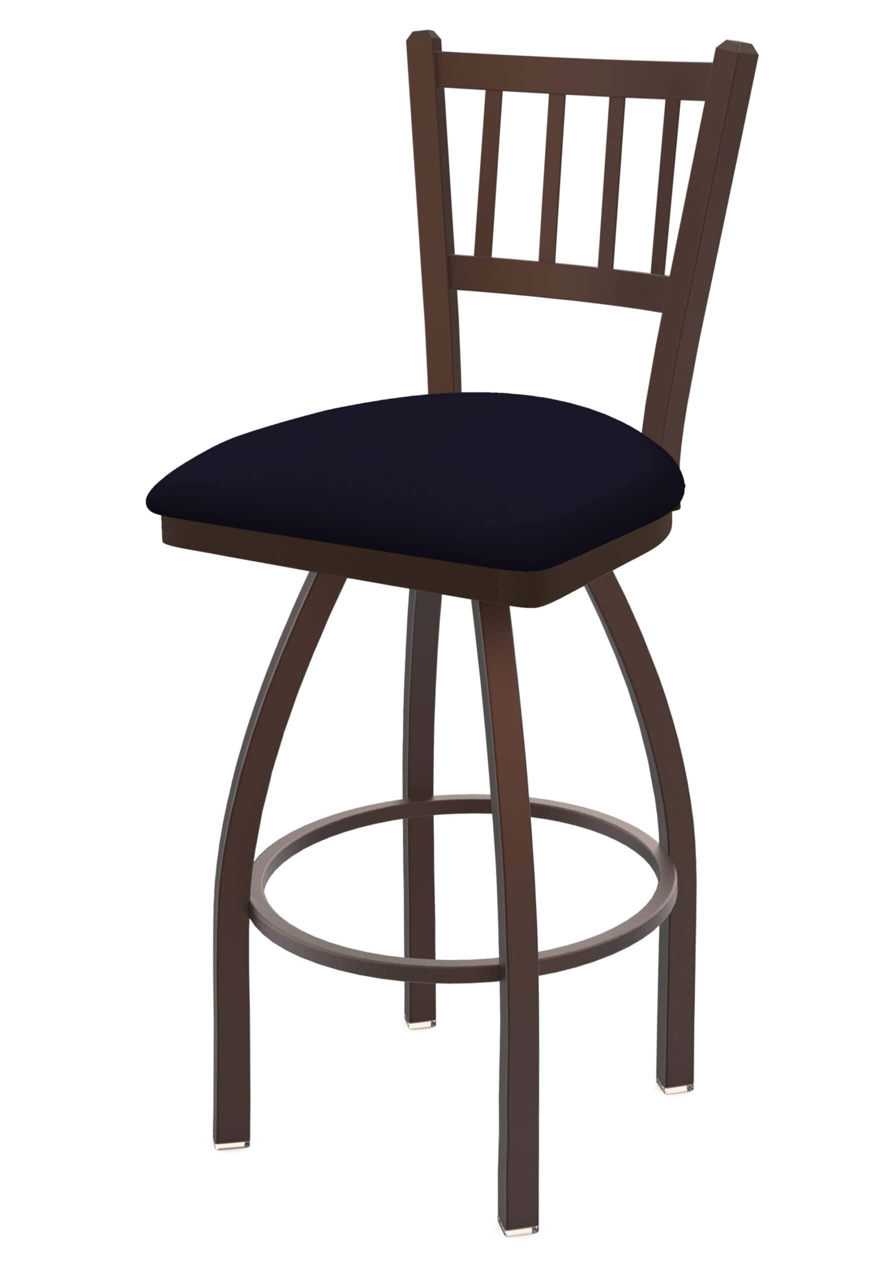 This 36-Inch Jailhouse Back Bar Stool is a perfect blend of style, comfort, and durability, making it an ideal addition to any bar or dining area. With its bronze finish steel frame, Canter Twilight vinyl seat, and single-ring base, this stool offers a contemporary design with exceptional back support. Enjoy hours of comfortable seating thanks to the generously upholstered padded seat and robust steel frame.