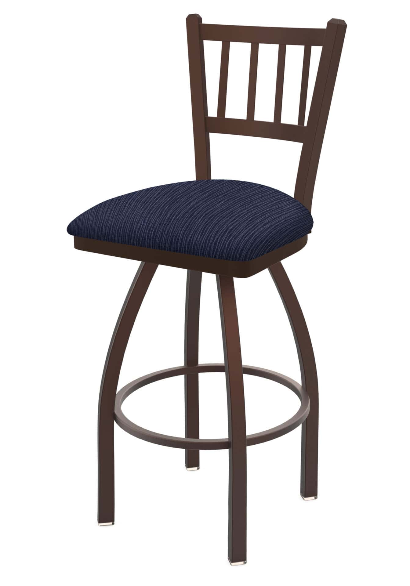 This 36-Inch Jailhouse Back Bar Stool is the perfect addition to your bar or entertainment area! With its unique design and robust construction, this stool provides both style and comfort. The bronze finish and graph anchor seat add a touch of elegance, while the steel frame ensures lasting durability. Enjoy superior back support and swivel action for a truly exceptional seating experience.