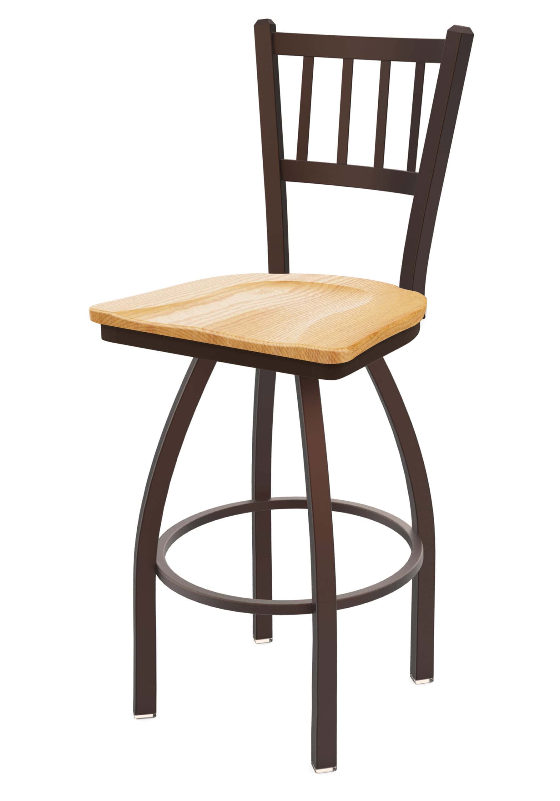 This 36-Inch Jailhouse Back Bar Stool combines a robust steel frame with a comfortable natural oak seat, creating a stylish and durable seating option. Its bronze finish and single-ring base add a touch of elegance, making it a perfect addition to any bar or dining area. Enjoy exceptional comfort and timeless style with this meticulously crafted bar stool.