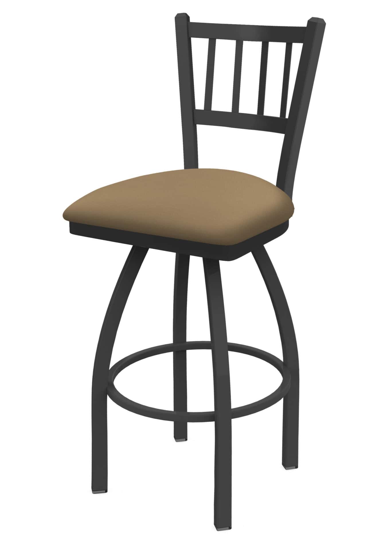 This 36-Inch Jailhouse Back Bar Stool combines a contemporary design with exceptional comfort. The frame is constructed from high-quality steel, ensuring strength and durability. The powder-coated pewter finish resists chips and scratches, maintaining a rich appearance for years to come. The canter sand seat is generously upholstered with high-density foam for maximum support. If you’re finishing your bar or dining area, this stool is an excellent choice.