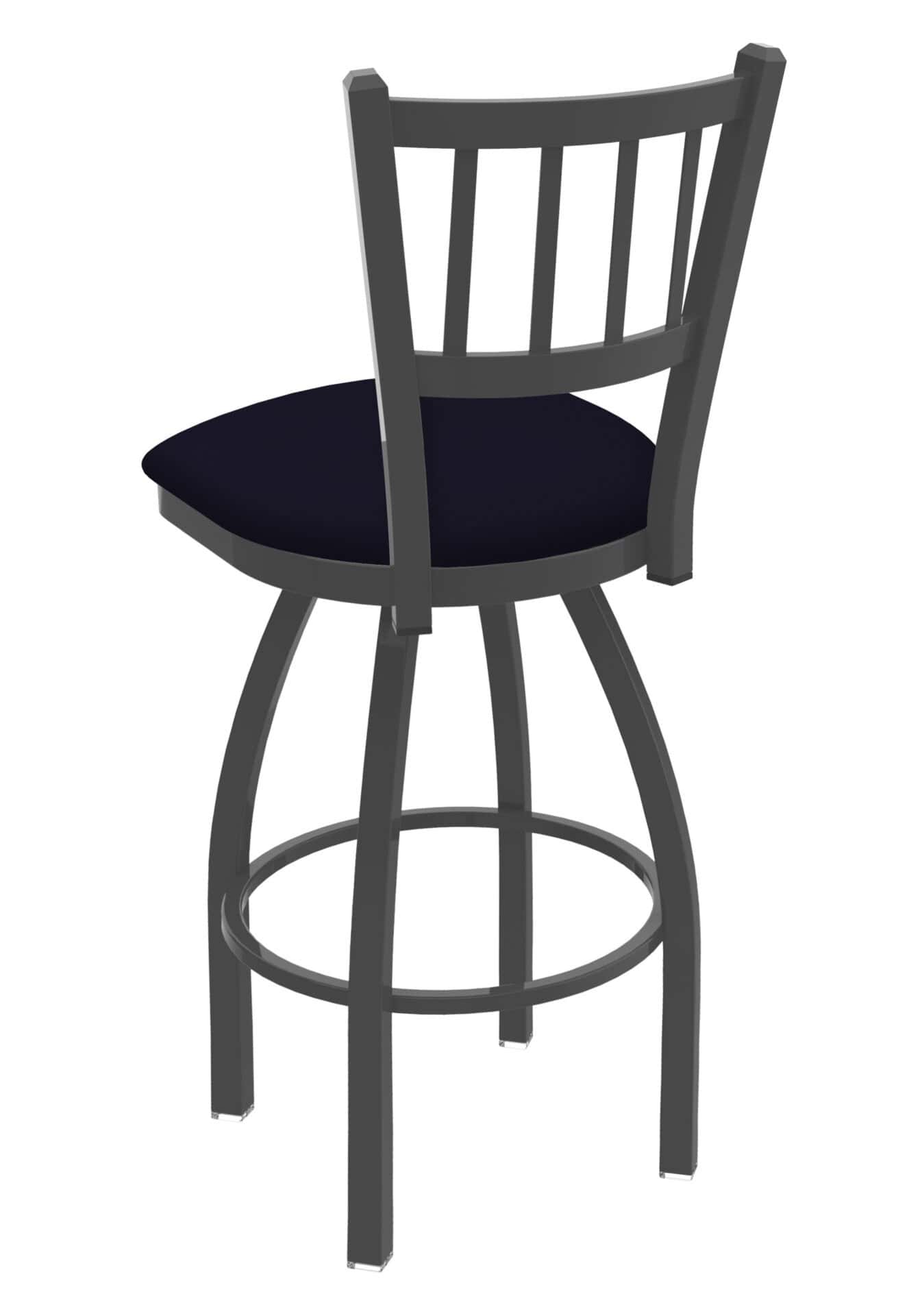 This extra tall bar stool is designed with a “Jailhouse” style back for added support and a unique look. The pewter finish adds a touch of sophistication, while the single-ring base provides stability. With its high-density foam seat and durable vinyl upholstery, this bar stool is perfect for long nights of relaxation and entertainment.