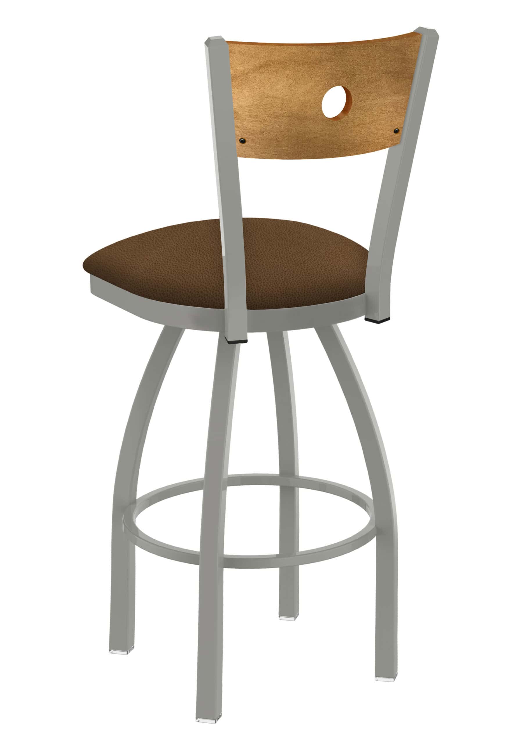 This 36-Inch Medium Stained Medium Wood Keyhole Back Bar Stool is designed for both style and durability. Featuring a robust steel frame with an anodized nickel finish, a comfortable Rein Thatch seat, and a single-ring base, this stool is a perfect addition to any bar area. Its timeless design and high-quality construction ensure years of reliable use.