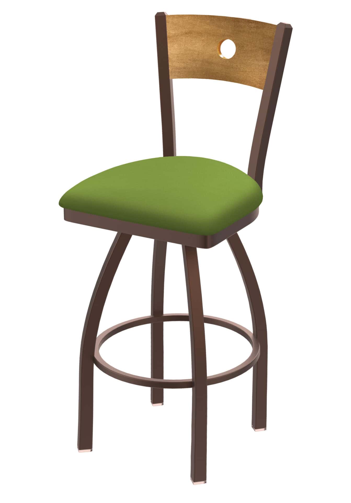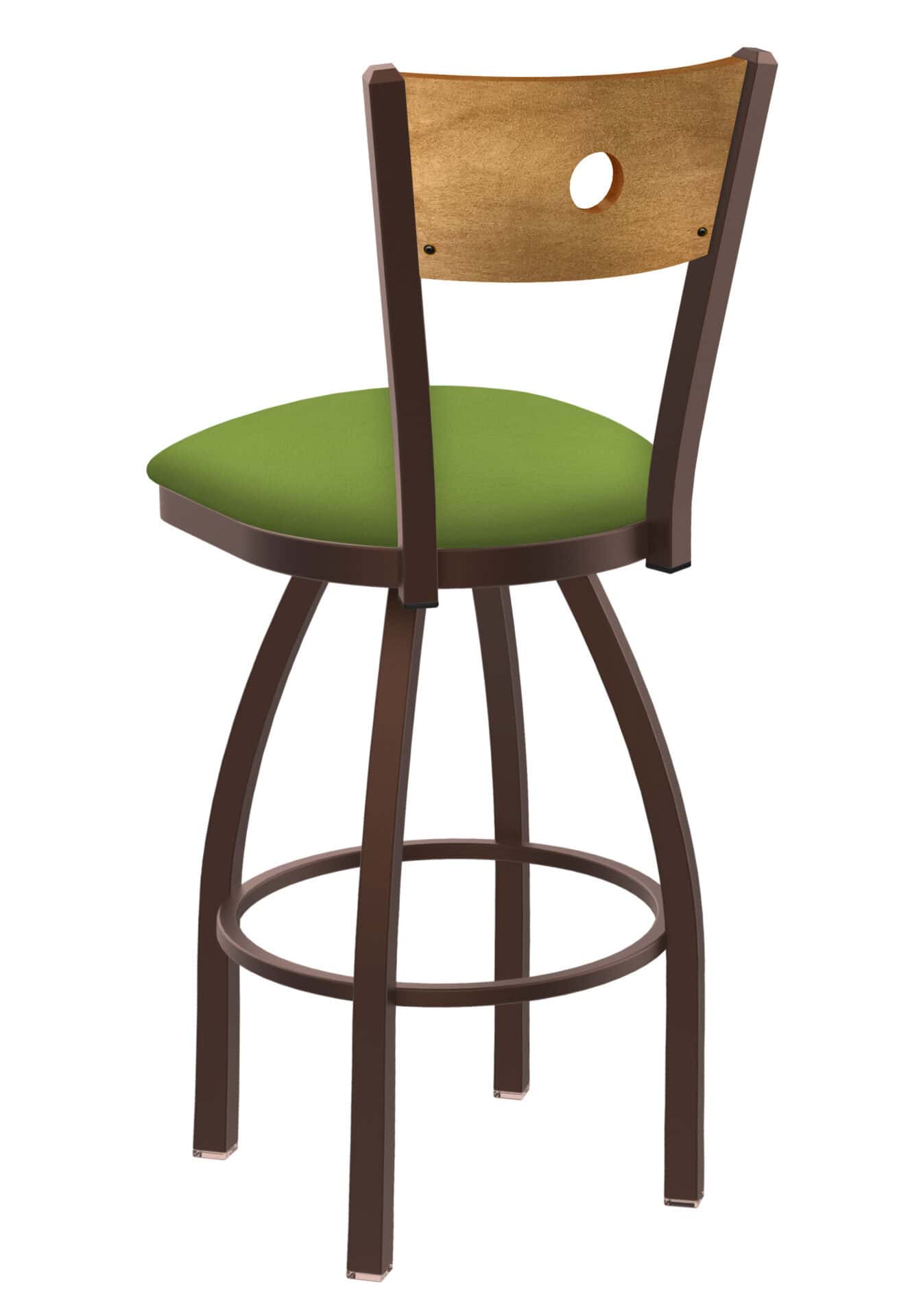 The keyhole back design adds a touch of elegance, while the medium-stained wood complements a variety of decor styles. The Canter Kiwi Green vinyl seat is both stylish and easy to clean. Built for lasting use, this bar stool provides the perfect spot to sit and relax for hours.