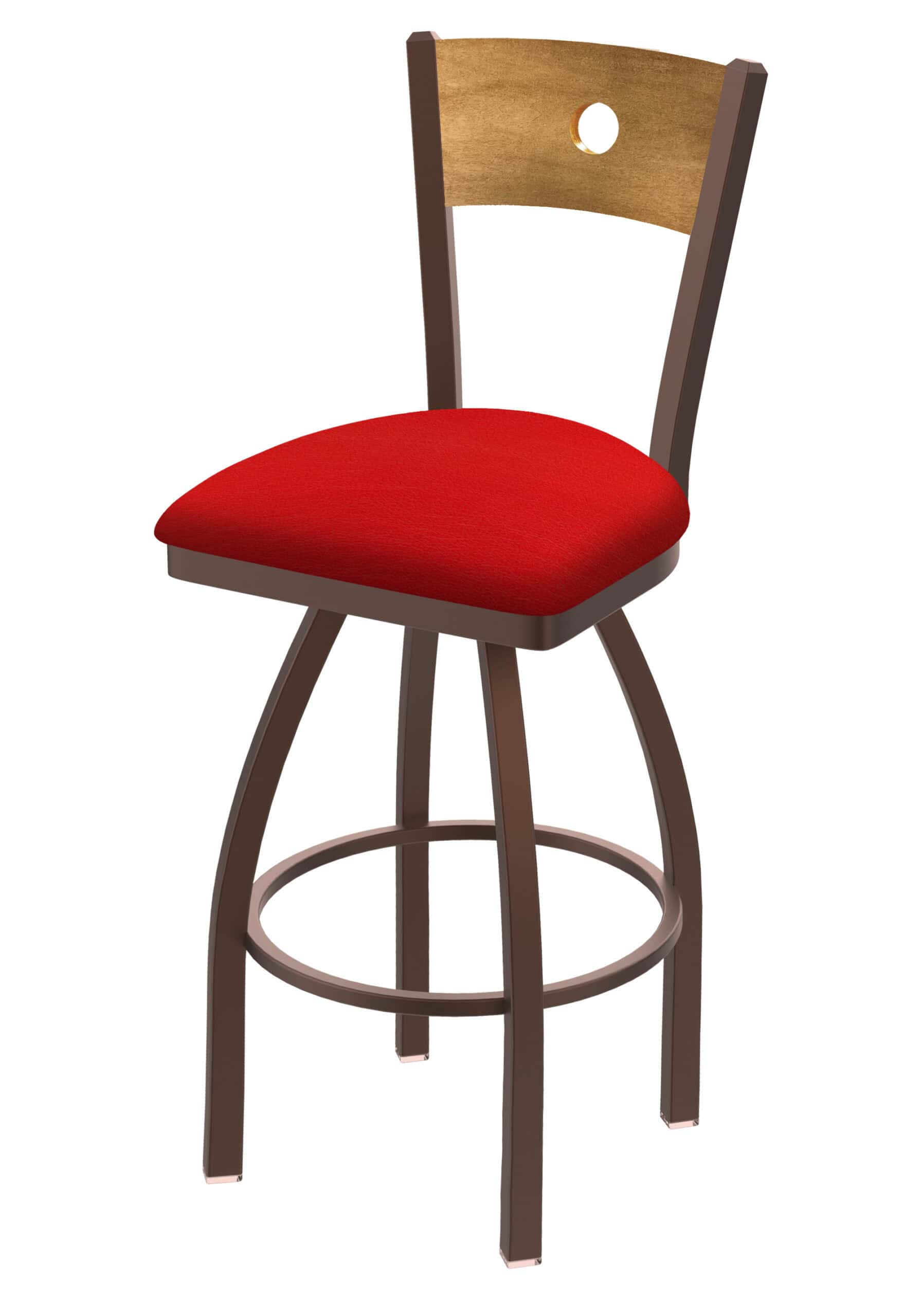 Bring a touch of class to your bar area with this meticulously crafted bar stool. Featuring a stylish wood back with a medium stain and a durable steel frame with a bronze finish, this stool is as sturdy as it is beautiful. The canter red seat provides exceptional comfort, making it perfect for long evenings of conversation and relaxation.