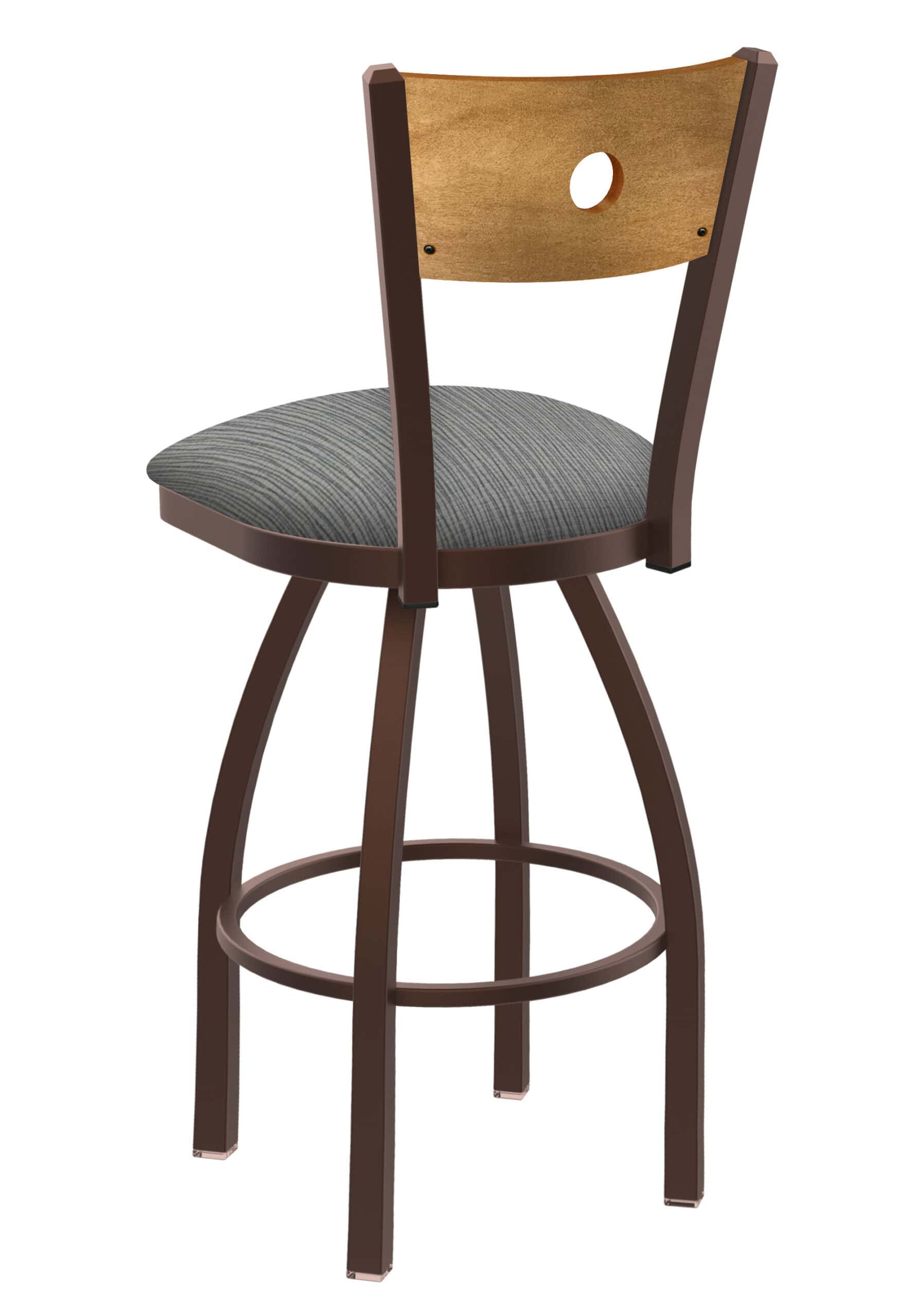 This 36-Inch Keyhole Back Bar Stool is a fantastic addition to any bar or dining area. It features a stylish wood back with a medium stain, a durable steel frame with a bronze finish, and a comfortable Graph Alpine seat. Built with quality materials and superior craftsmanship, this stool is designed to last.