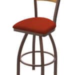 Add a touch of custom style to your bar area with this 36-Inch Keyhole Back Bar Stool. Featuring a medium stained wood back, a bronze finish steel frame, and a comfortable Graph Poppy seat, this stool is as durable as it is stylish. Enjoy years of comfortable seating with its high-quality construction and materials.