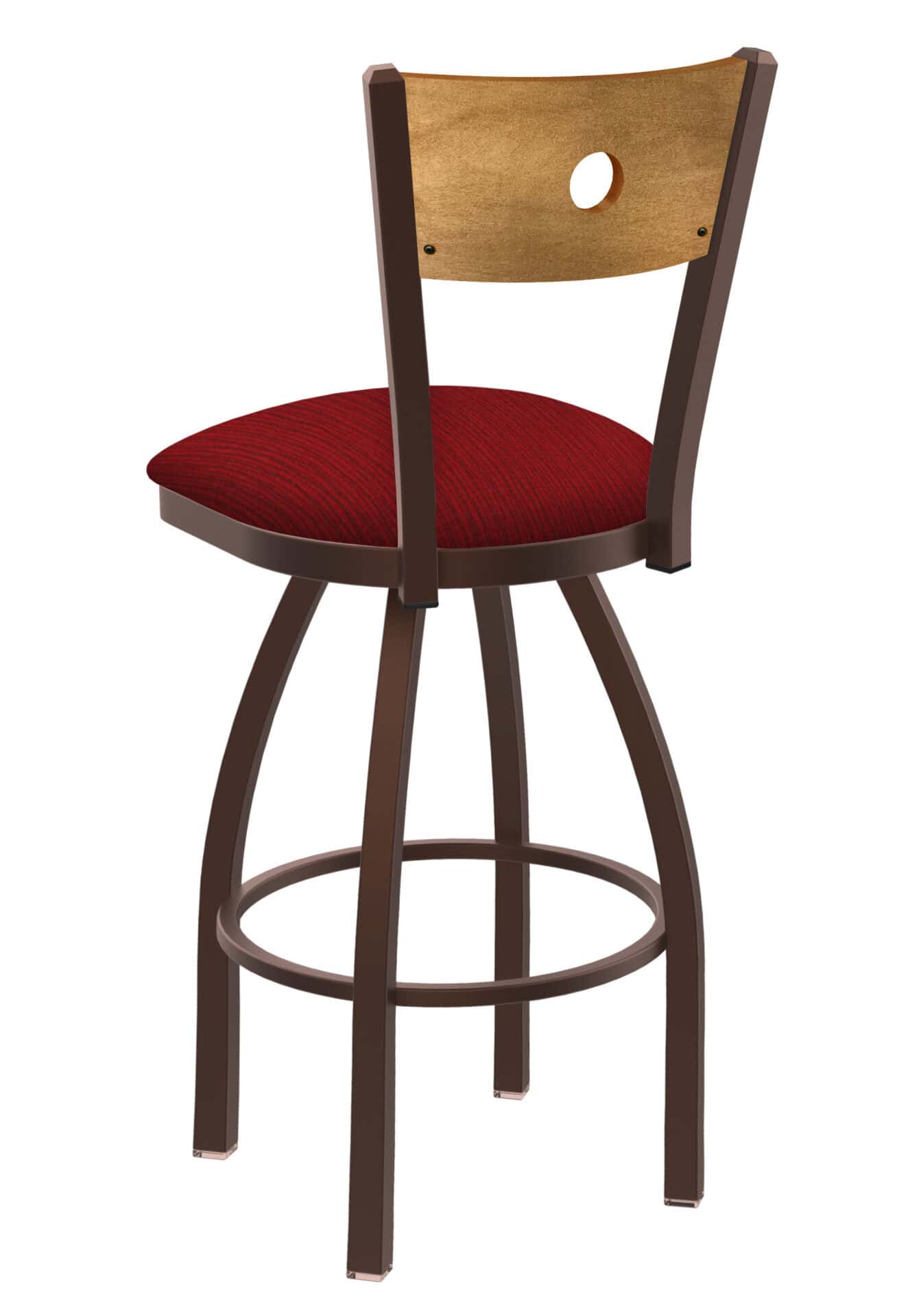 Looking to customize your bar area? This 36-Inch Keyhole Back Bar Stool is built to last and designed for comfort. With its sturdy steel frame, medium-stained wood back, and comfortable upholstered seat, this stool is perfect for completing your bar or dining space.