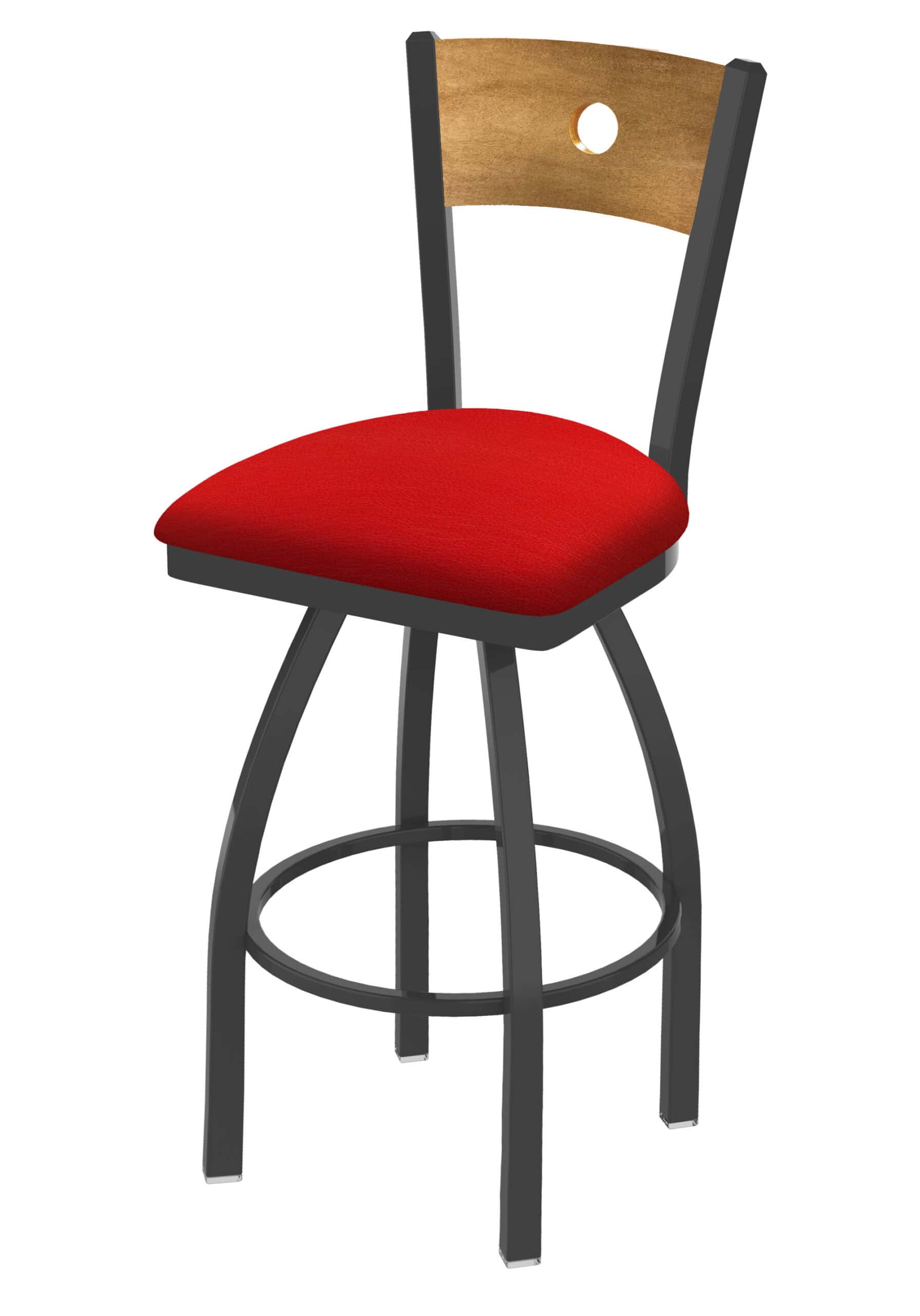 This 36-Inch Keyhole Back Bar Stool is the ultimate seating upgrade! Boasting a stylish medium-stained wood back and a robust steel frame with a pewter finish, this stool isn’t just a seat—it’s a statement. The canter red seat adds a pop of color, while the single-ring base provides rock-solid stability. Get ready to transform your space with unparalleled comfort and style!