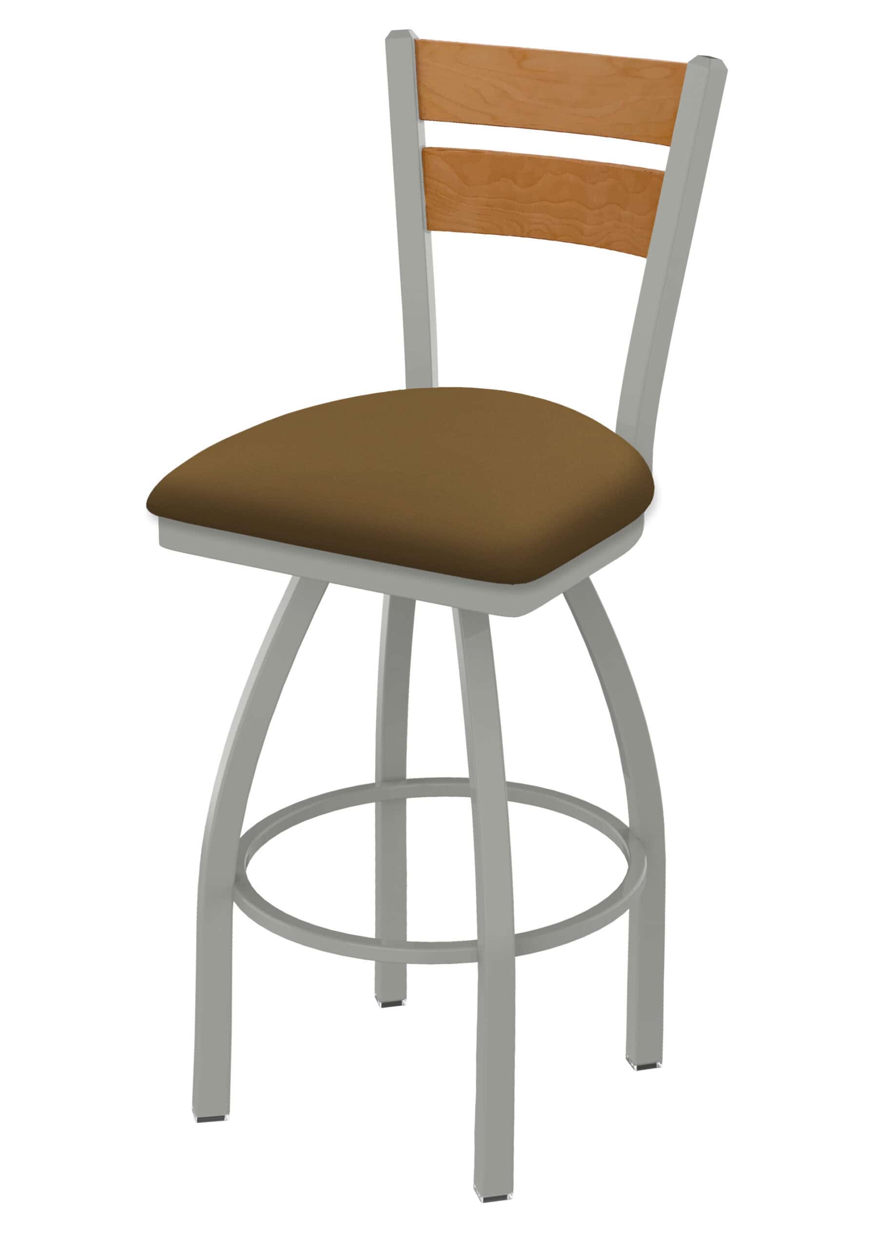 This 36-Inch Medium Two-Slat Back Bar Stool combines durability with a touch of contemporary style. Featuring a sturdy steel frame with an anodized nickel finish and a comfortable canter saddle seat, this stool is designed for both residential and commercial use. The medium-stained wood back adds a touch of warmth, while the single-ring base provides stability. Enjoy lasting comfort and a sophisticated look in your bar or dining area with this exceptional bar stool.