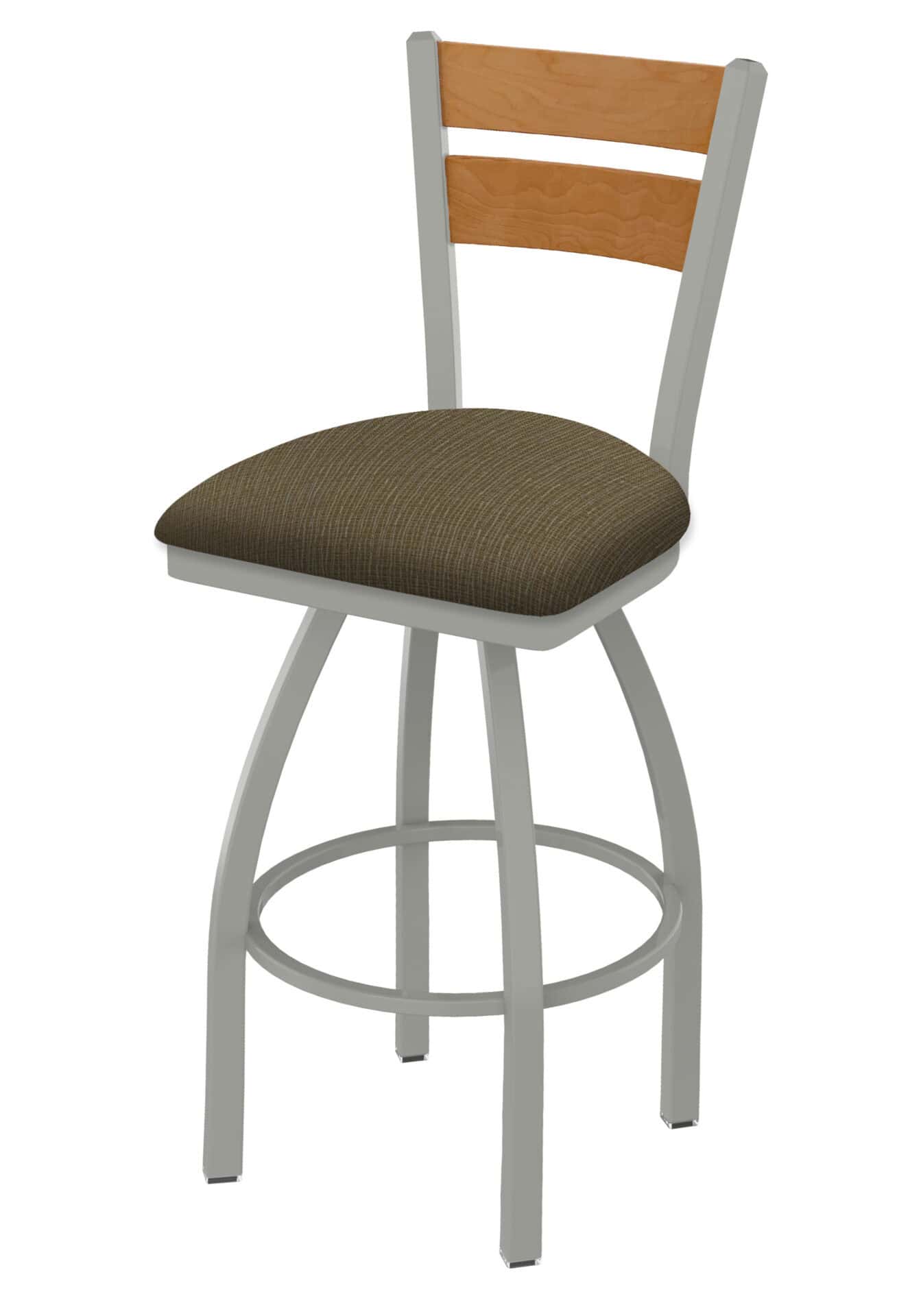 Get ready to customize your space with this Anodized Nickel Thor swivel extra tall bar stool. It boasts a contemporary design with a stylish wood back, a durable steel frame, and a comfortable, high-quality seat. Perfect for finishing your bar or dining area with style and comfort! This stool is built to last and designed for maximum comfort.