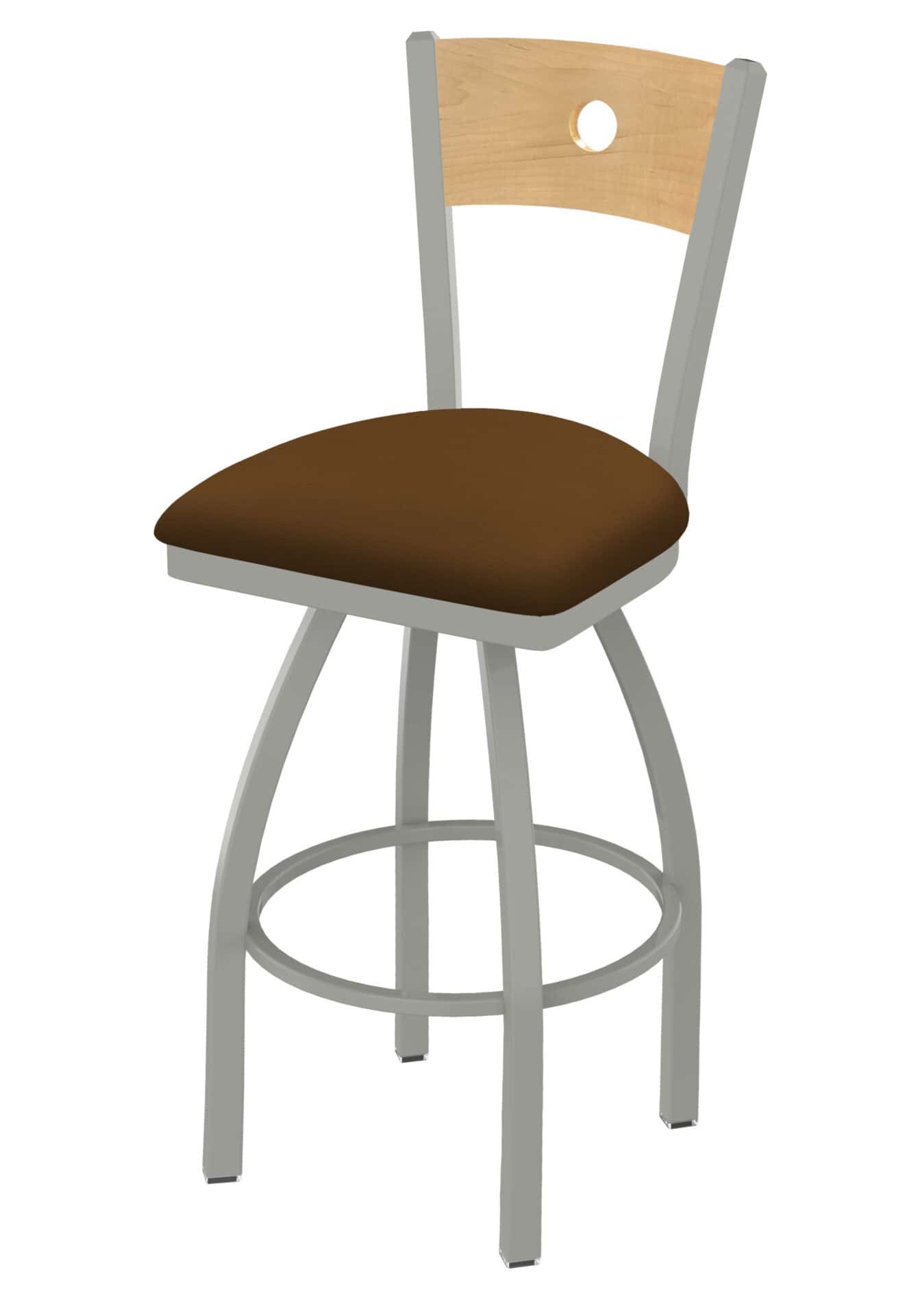 This 36-Inch Natural Finish Wood Keyhole Back Bar Stool combines classic design with robust construction, making it a perfect addition to any bar or dining area. It features a stylish wood back with a natural finish, a comfortable Canter Thatch seat, and a durable steel frame with an anodized nickel finish. The single-ring base adds stability and enhances the stool’s overall aesthetic appeal. This stool is designed for both comfort and longevity.