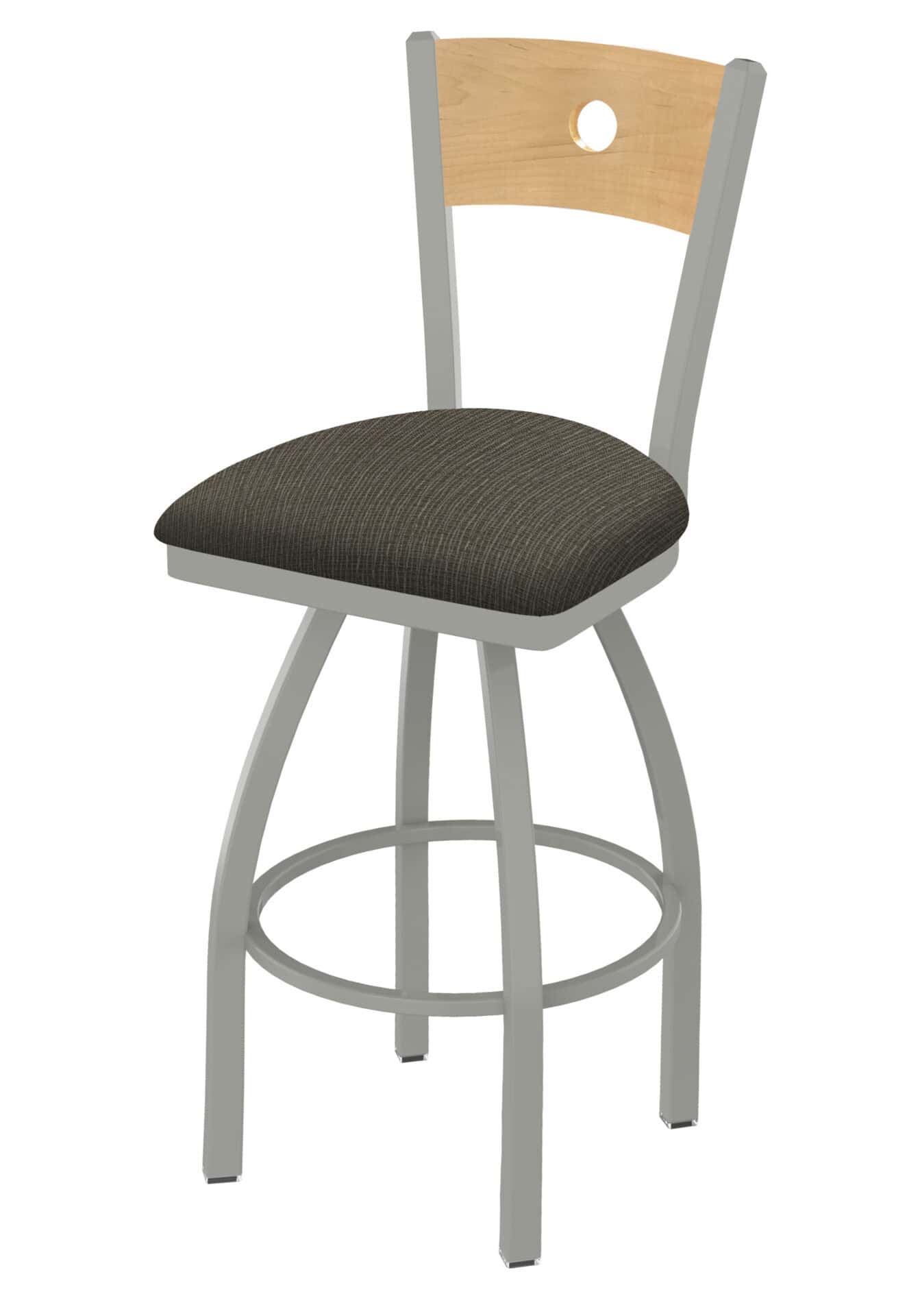 This 36-Inch Natural Finish Wood Keyhole Back Bar Stool combines style and durability, making it the perfect addition to your bar or dining area. The blend of a natural wood finish and an anodized nickel steel frame offers a contemporary look with lasting quality. The robust steel frame ensures stability, while the comfortable, padded seat provides hours of seating pleasure.
