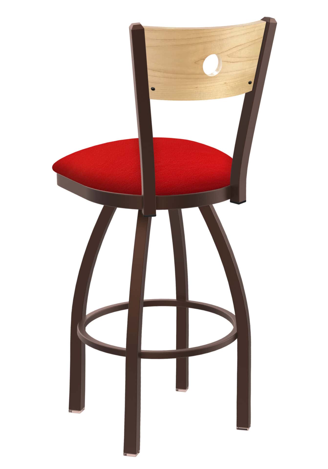 This 36-Inch Natural Finish Wood Keyhole Back Bar Stool is a fantastic way to customize your bar area! It features a stylish wood back, a durable steel frame with a bronze finish, and a comfortable, padded seat. Built to last, this stool will provide years of enjoyment.