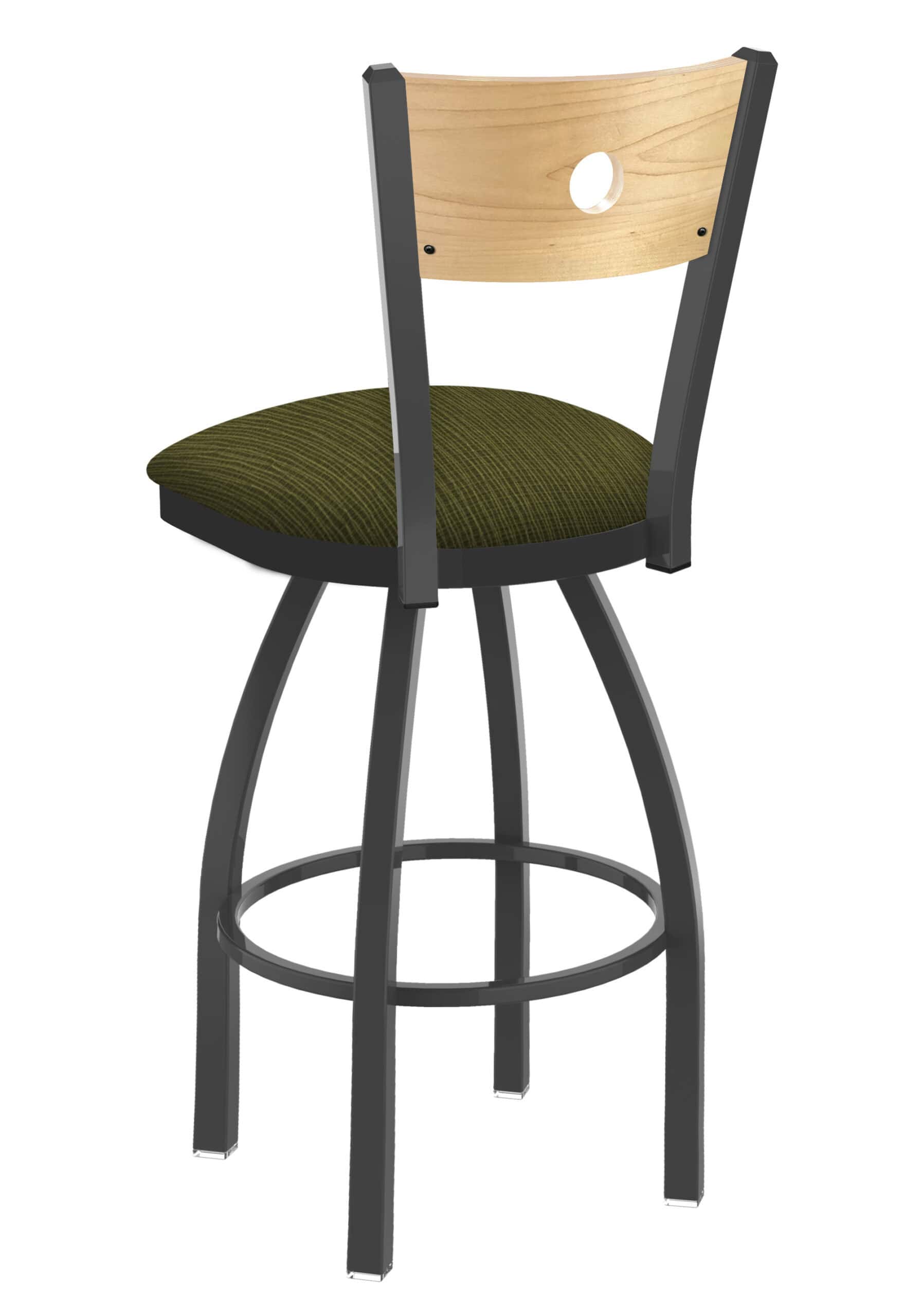 This 36-Inch Natural Finish Wood Keyhole Back Bar Stool combines timeless design with robust construction. Featuring a stylish wood back with a natural finish and a pewter finish steel frame, this bar stool is designed for both aesthetic appeal and long-lasting durability. The Graph Parrot upholstered seat provides exceptional comfort, making it perfect for extended use. This swivel bar stool is an ideal addition to any bar or dining area.