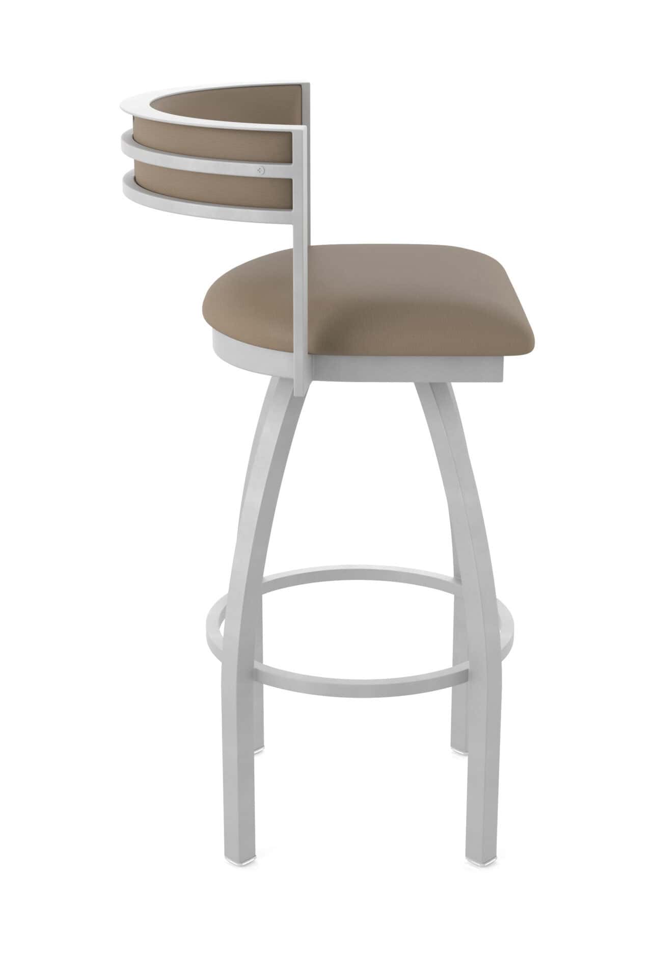 Experience superior support and longevity with the 2.5-inch high-density foam cushion and commercial-grade upholstery. The contoured, padded backrest provides excellent lumbar support, enhancing your seating experience. The durable powder coat finish ensures the stool maintains its beauty, resisting rust, chips, and abrasions.