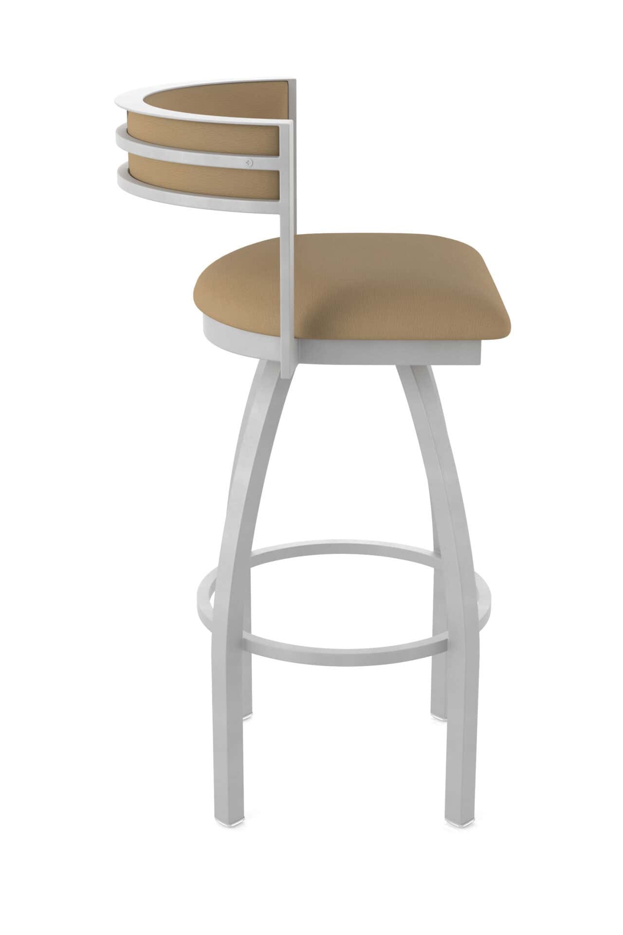 The stool features a durable steel frame, a comfortable 2.5-inch cushioned seat, and a supportive low curved back. The smooth swivel mechanism ensures easy movement, while the sturdy construction provides long-lasting reliability. Customize the upholstery to perfectly match your decor and enjoy years of comfortable seating.