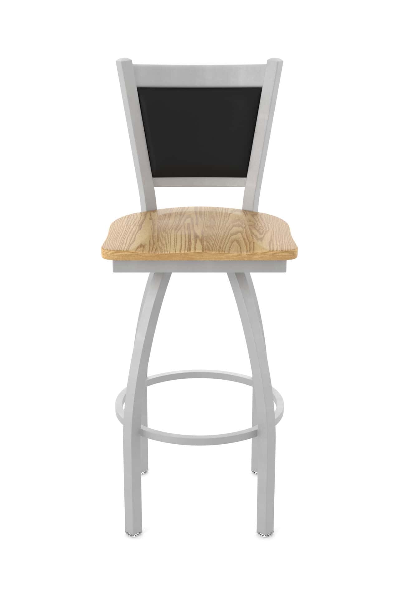 This 36-inch steel swivel bar stool combines refined design with durable construction. Featuring an anodized nickel finish, a natural oak solid oak wood seat, a padded back, and a single-ring base, this stool provides both style and comfort. The swivel mechanism ensures smooth rotation, while the robust steel frame guarantees long-lasting support.