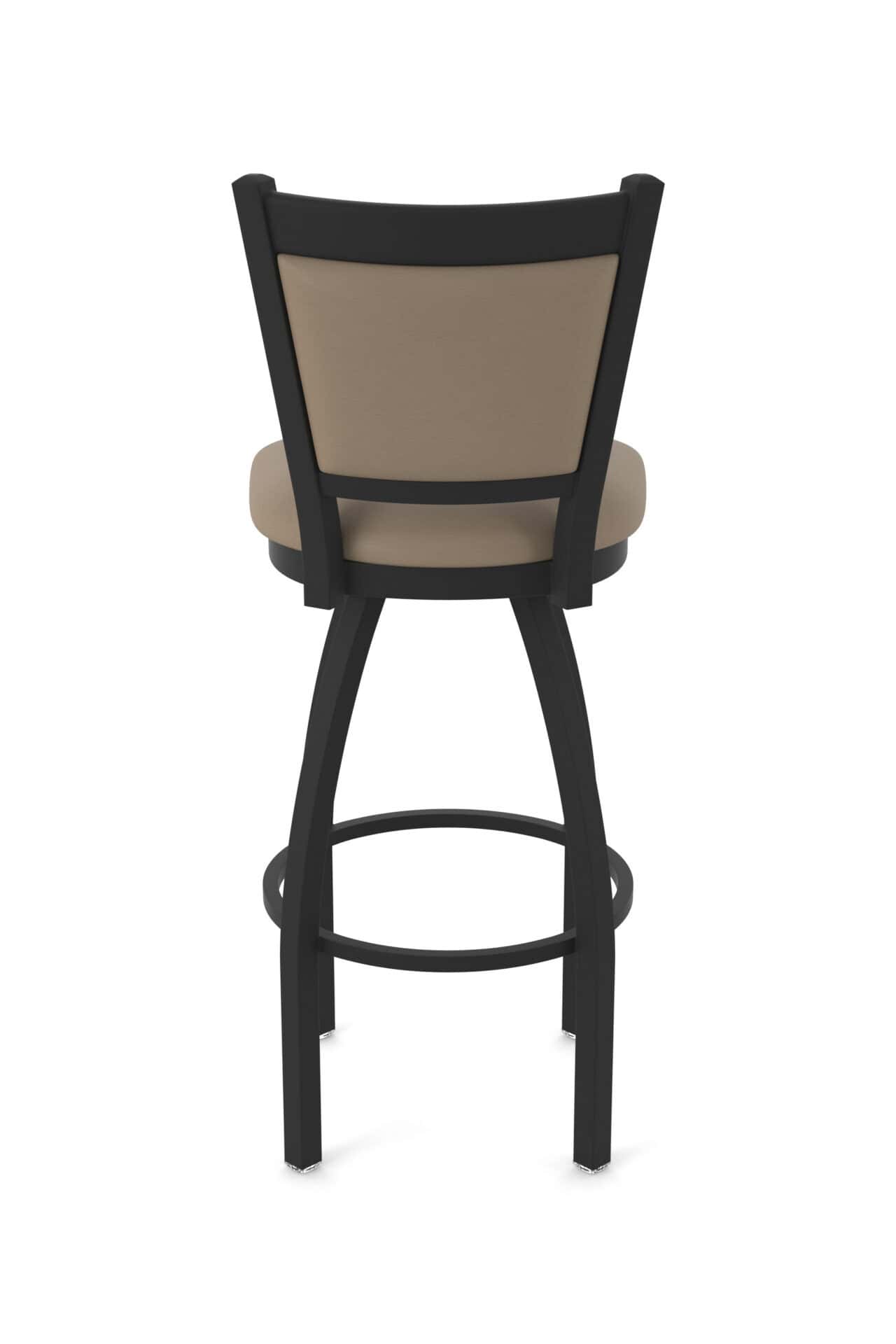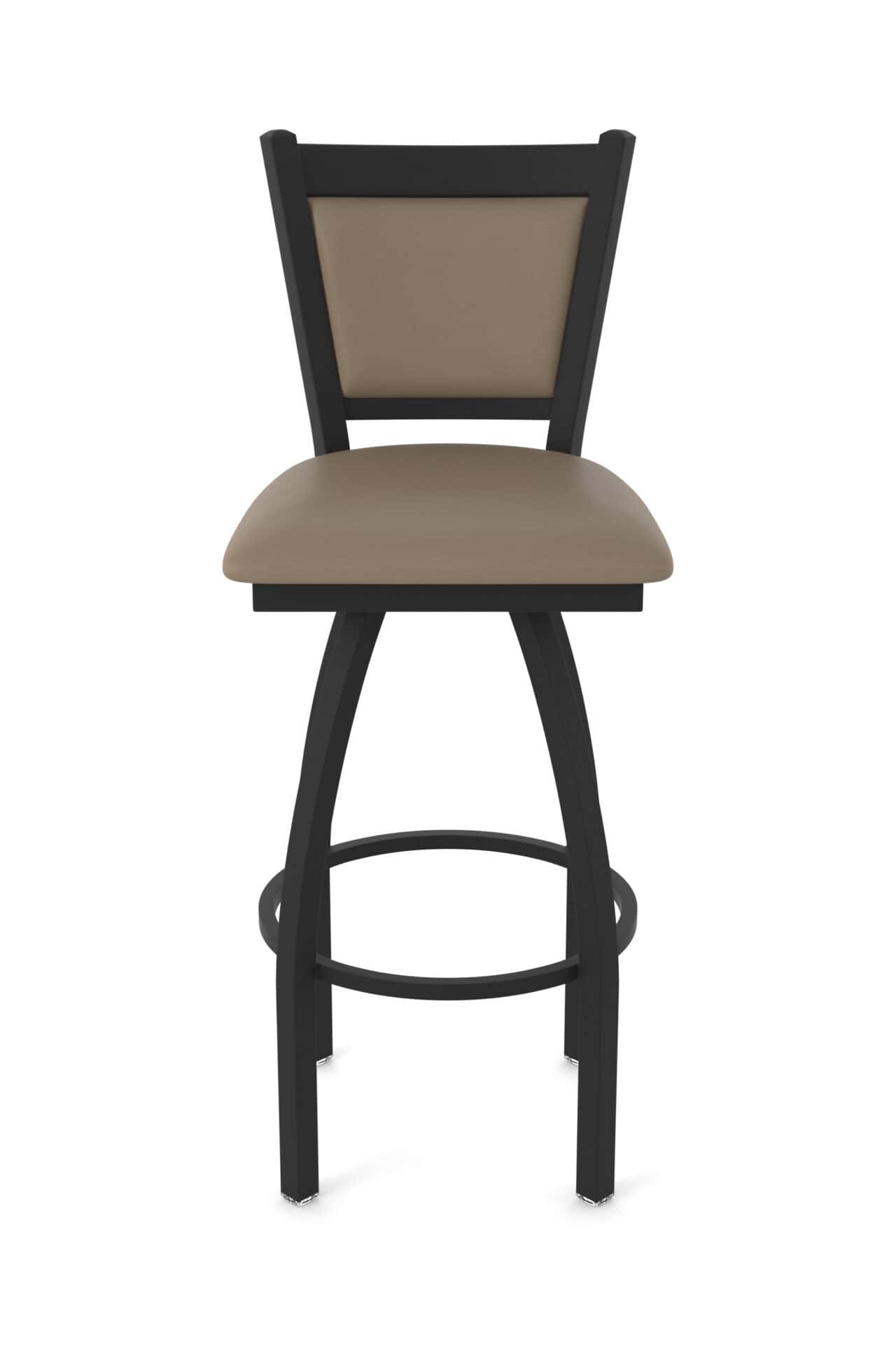 This stool features a durable black wrinkle powder coat finish and a comfortably padded back. The 2.5-inch high-density foam cushion ensures maximum support, while the smooth swivel allows for easy conversation.