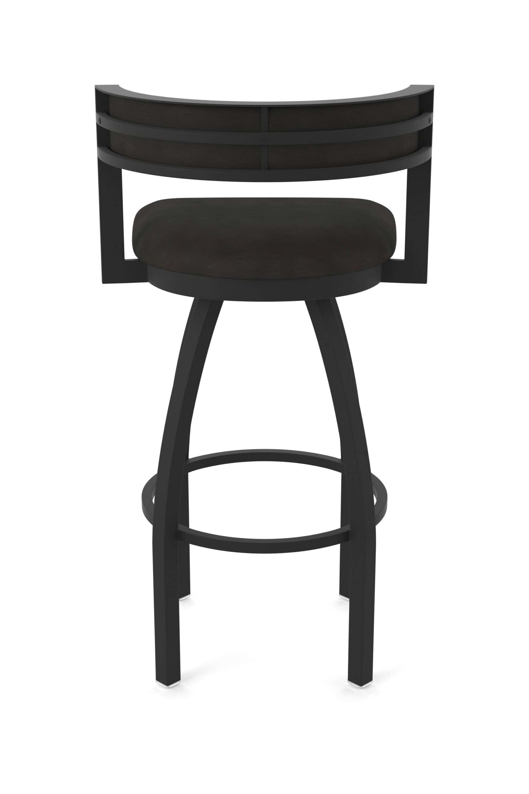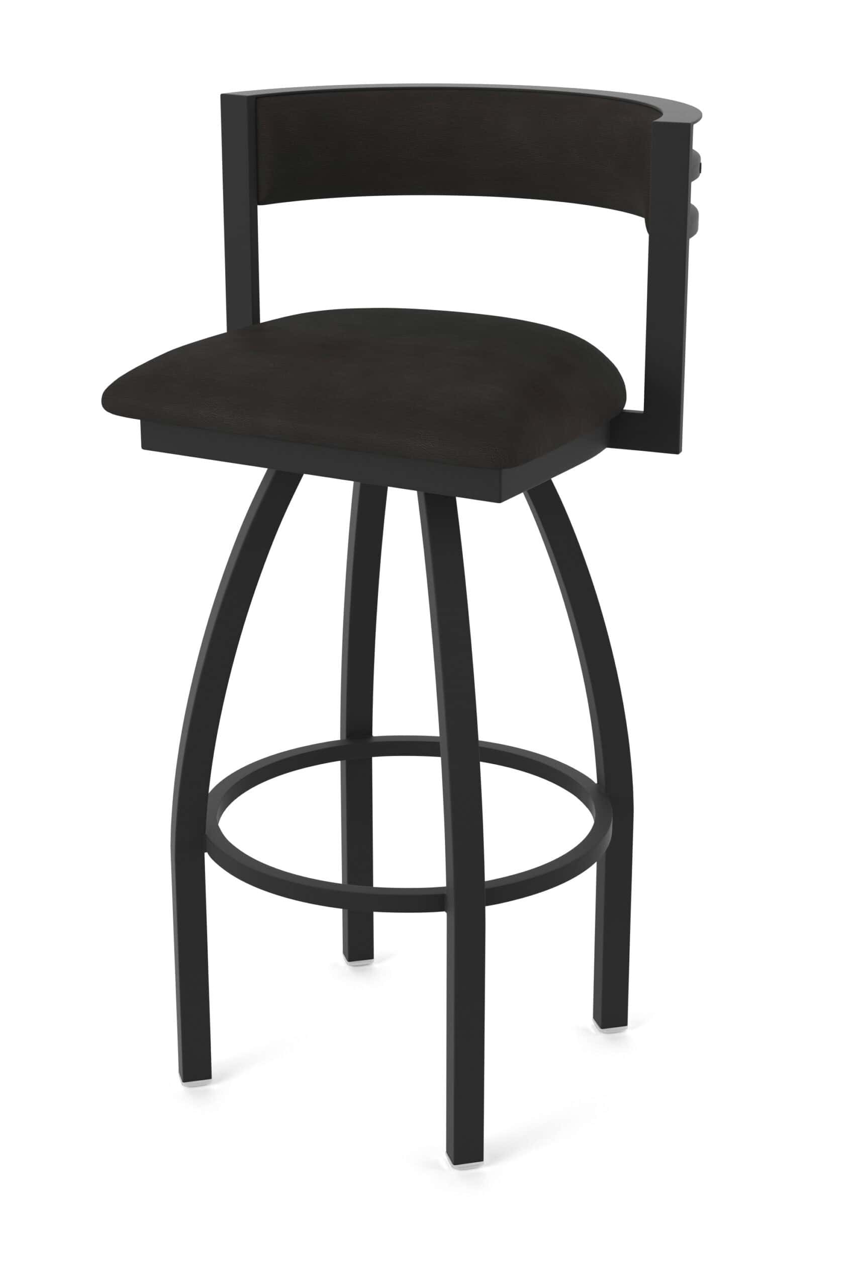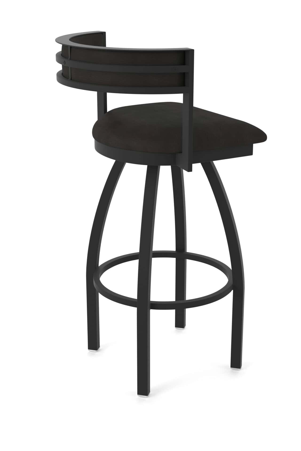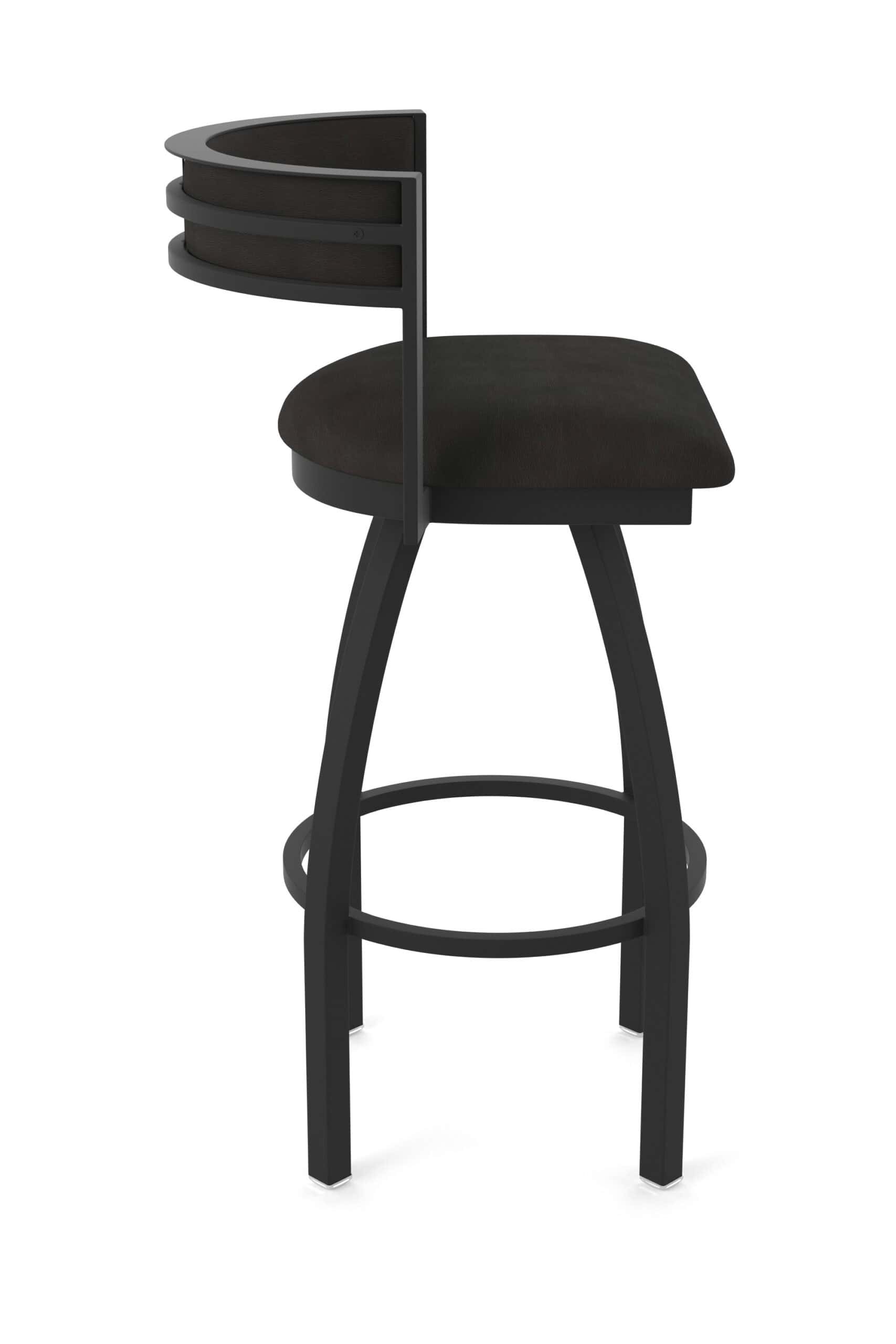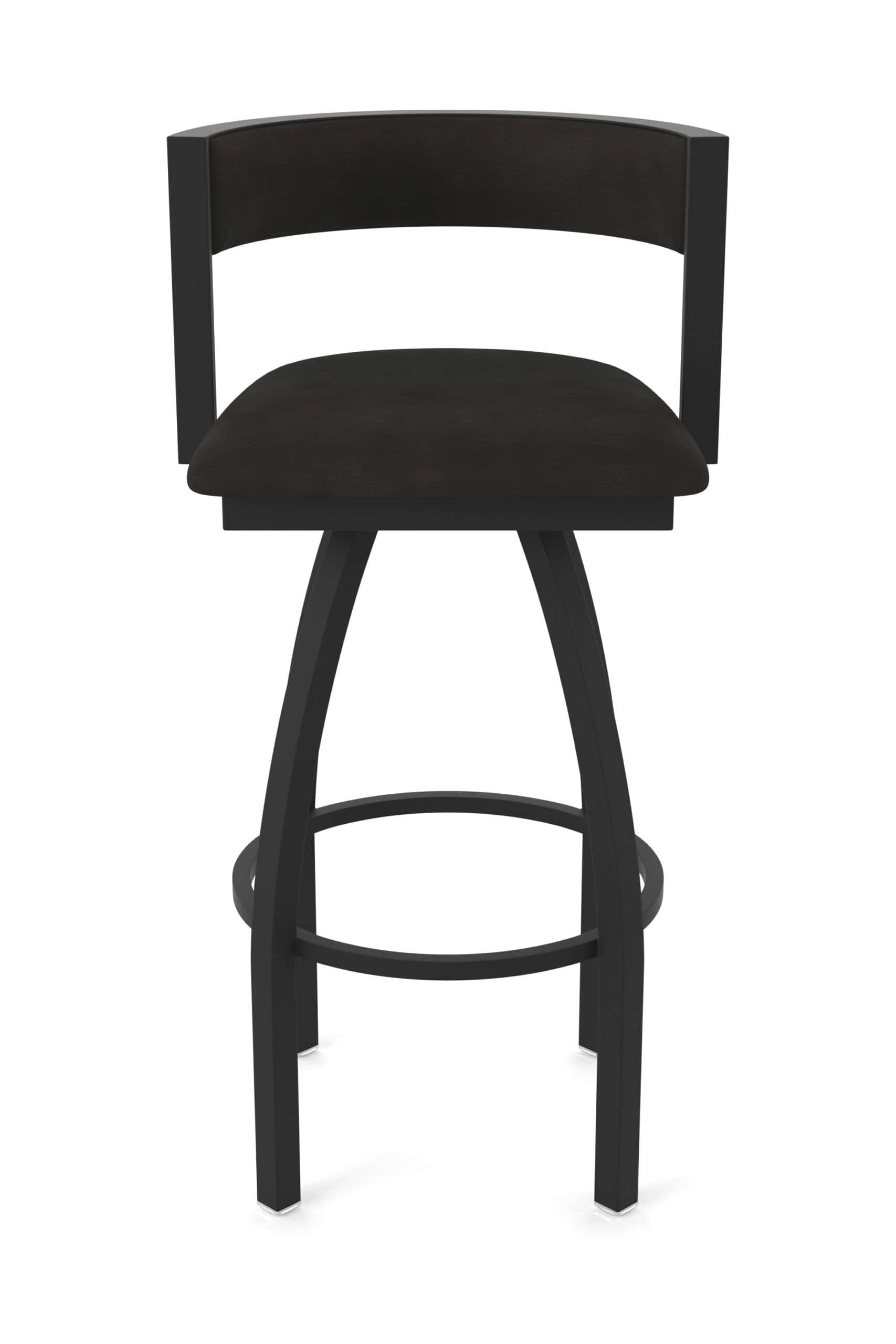 This stool boasts a heavy-duty steel frame with a black wrinkle finish for a sleek look and exceptional durability. The Canter Espresso cushion seat provides comfort, while the low curved padded back offers lumbar support. The smooth swivel mechanism ensures ease of use and enjoyment for years to come.