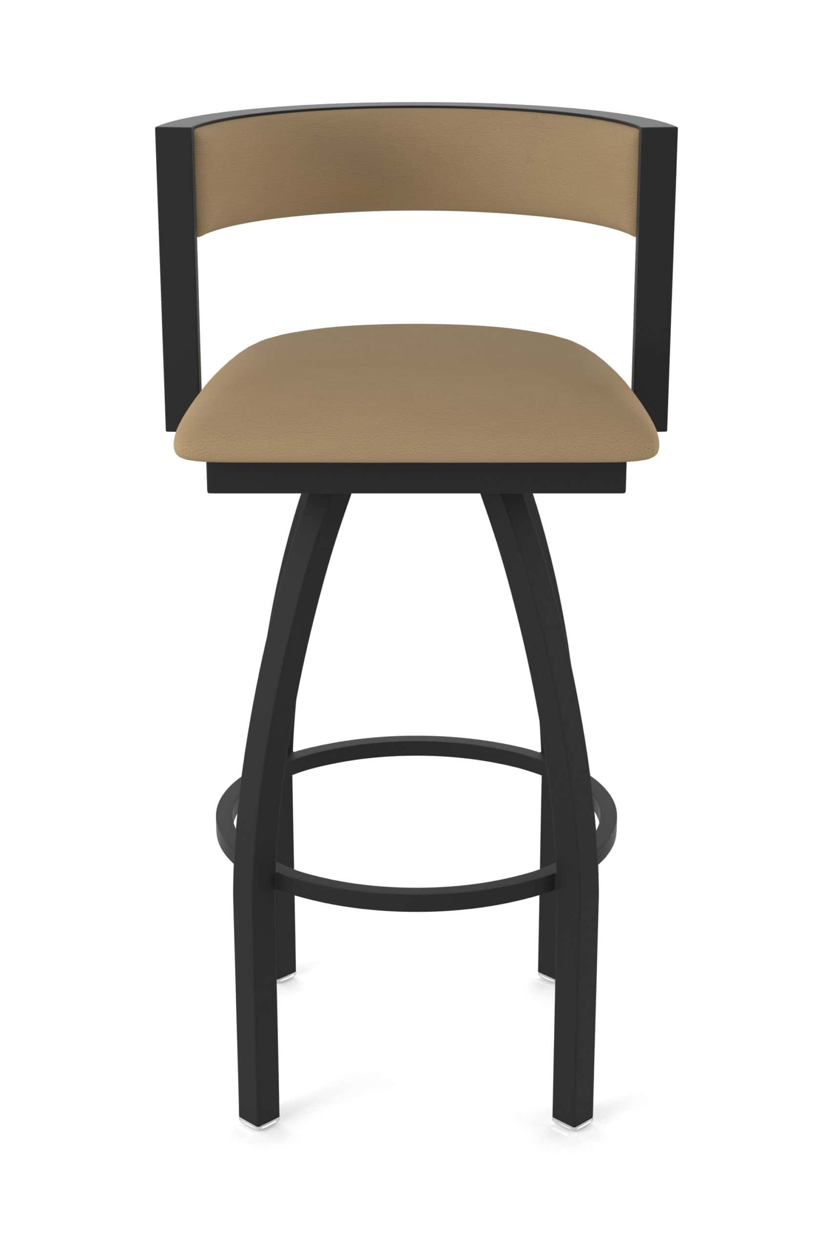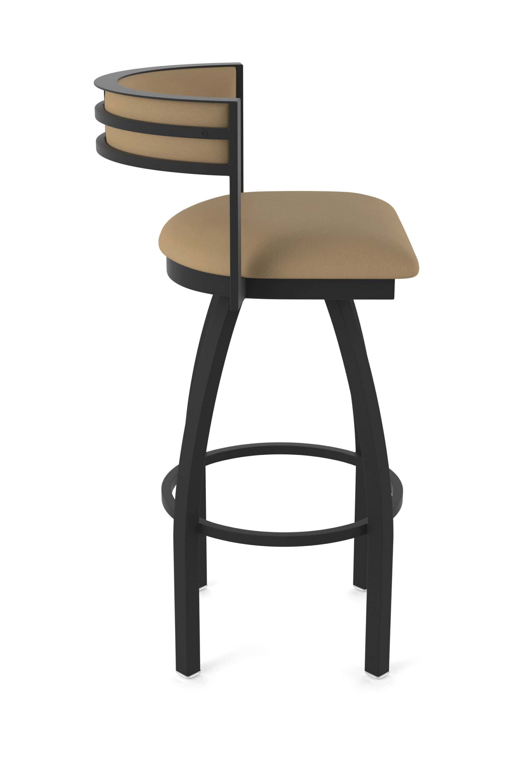 This stool features a heavy-duty steel frame built for longevity and stability. The 2.5-inch high-density foam cushion provides lasting comfort, while the low, curved backrest offers excellent lumbar support. The 360-degree swivel allows for easy movement and conversation.