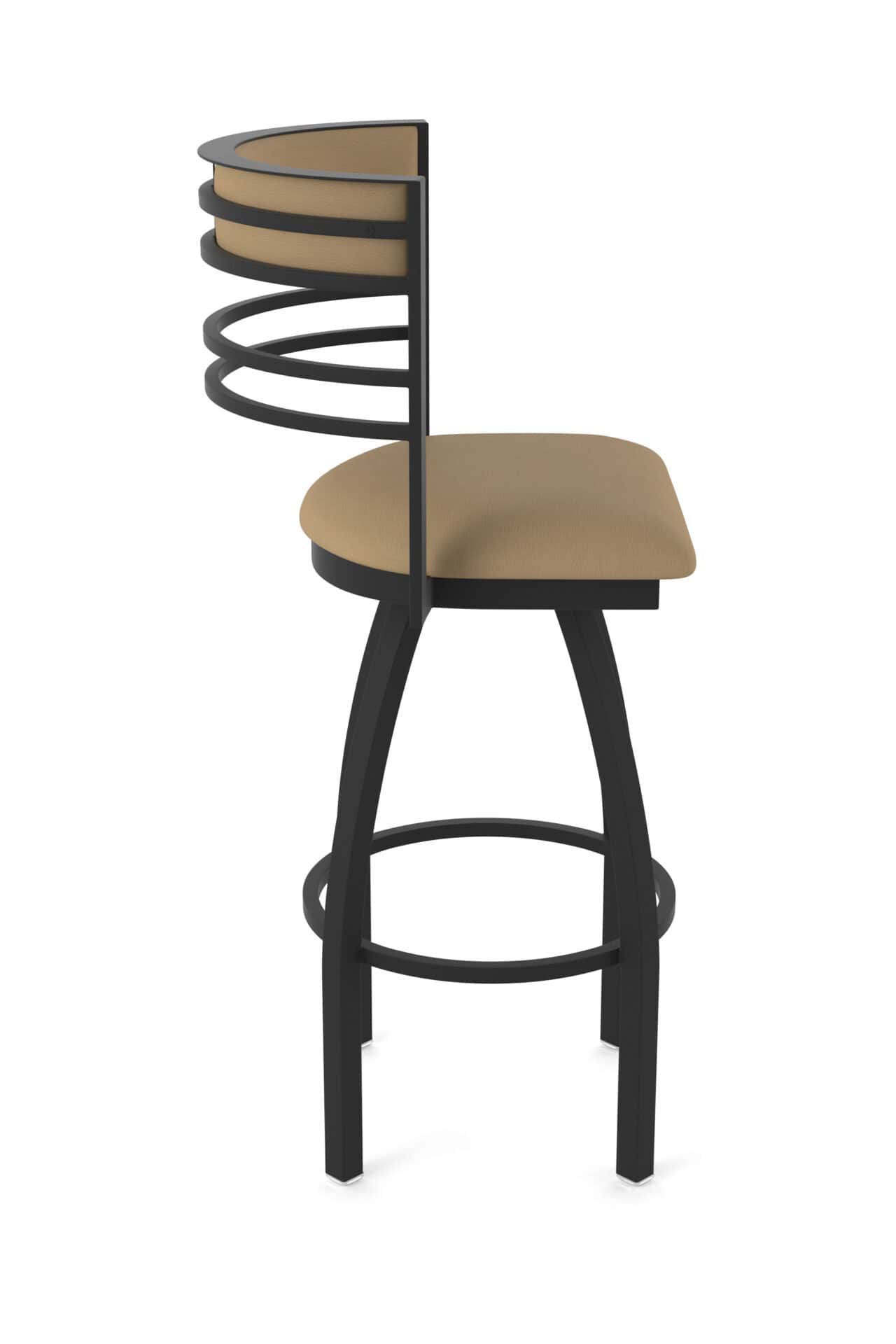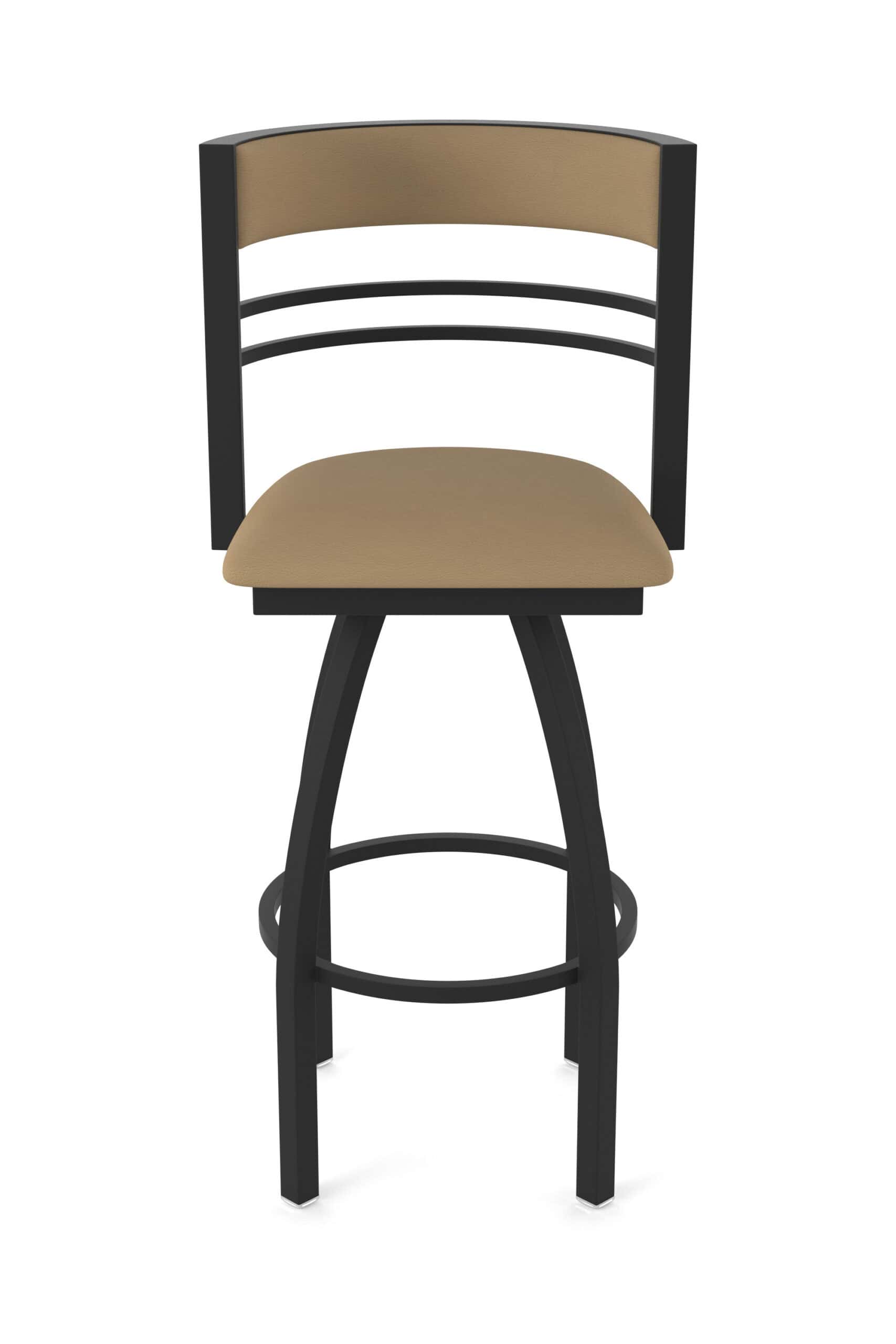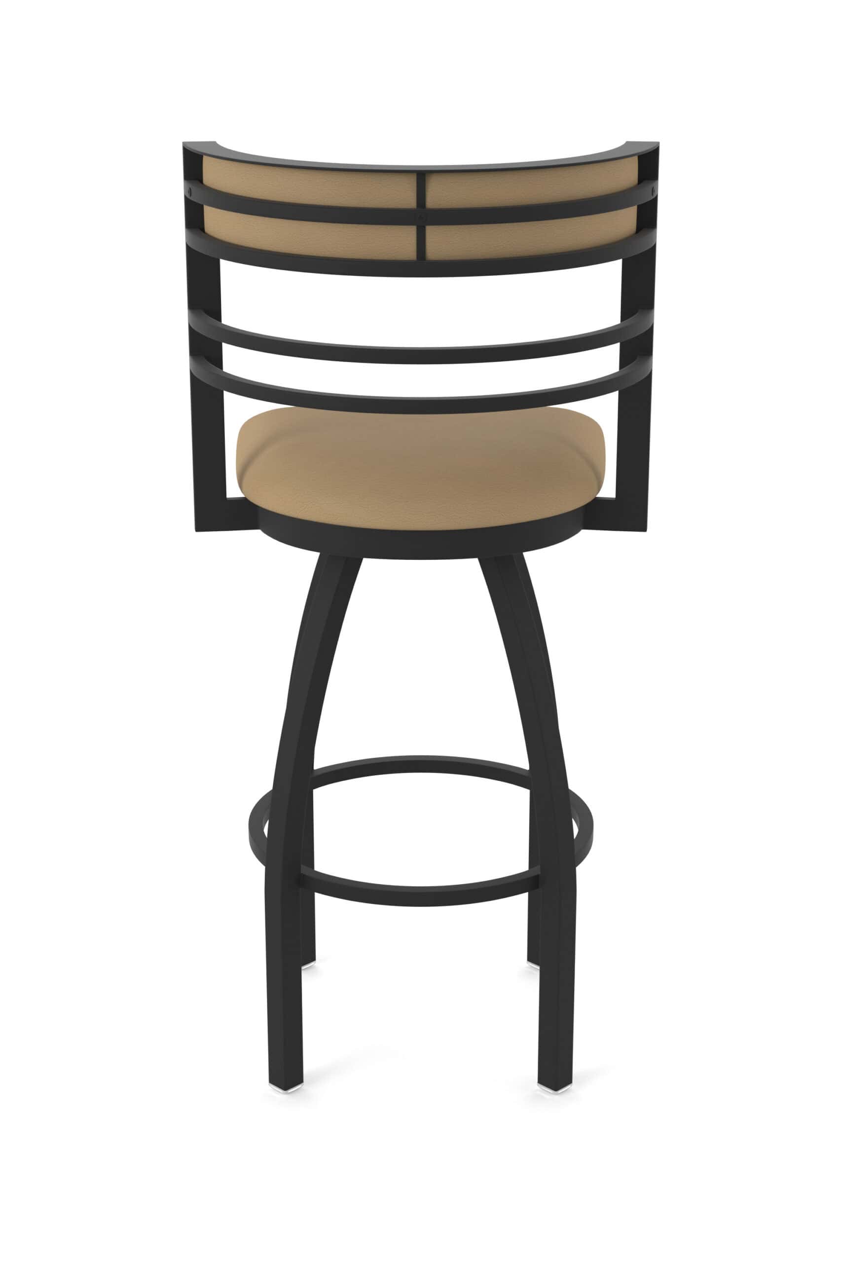 - Back: Padded and upholstered tall back for enhanced design, comfort, and support with a wide selection of vinyl and fabric options, accented by strong, sleek metal bars that match the base finish