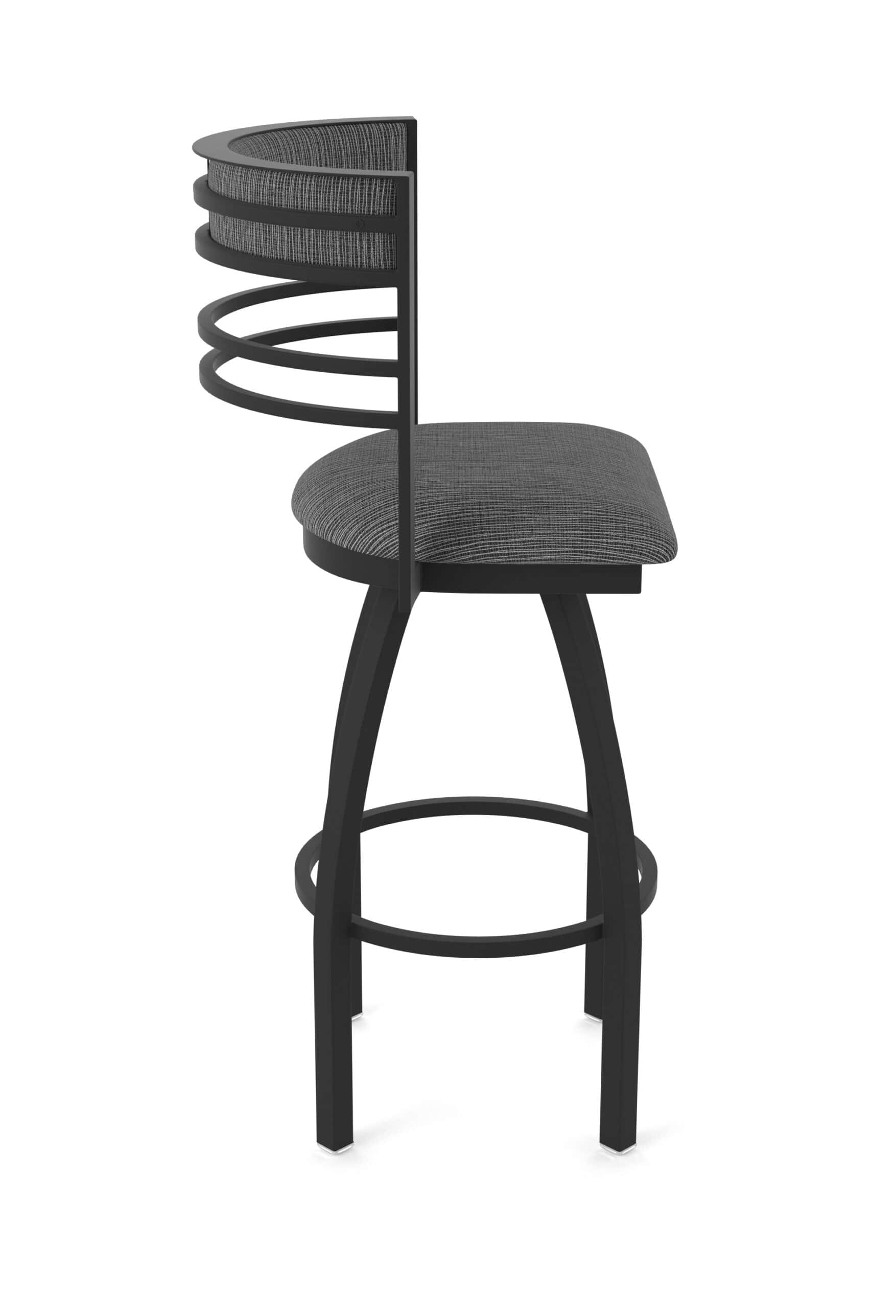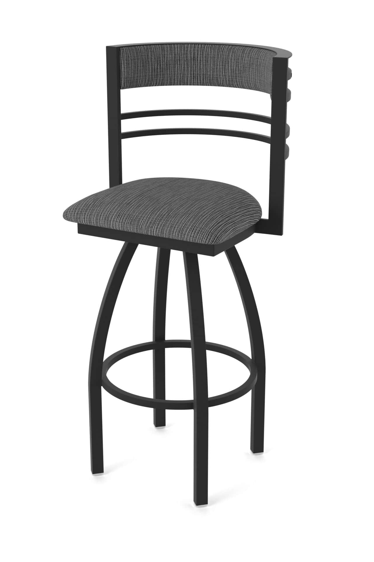 Experience the perfect blend of style and durability with this bar stool. The tall, curved slat back provides excellent support, while the 2.5-inch high-density foam cushion ensures hours of comfortable seating. The black wrinkle finish on the steel frame not only adds a touch of elegance but also protects against rust and abrasions, ensuring long-lasting beauty. The smooth swivel mechanism allows for easy movement, making this stool a versatile addition to your home.