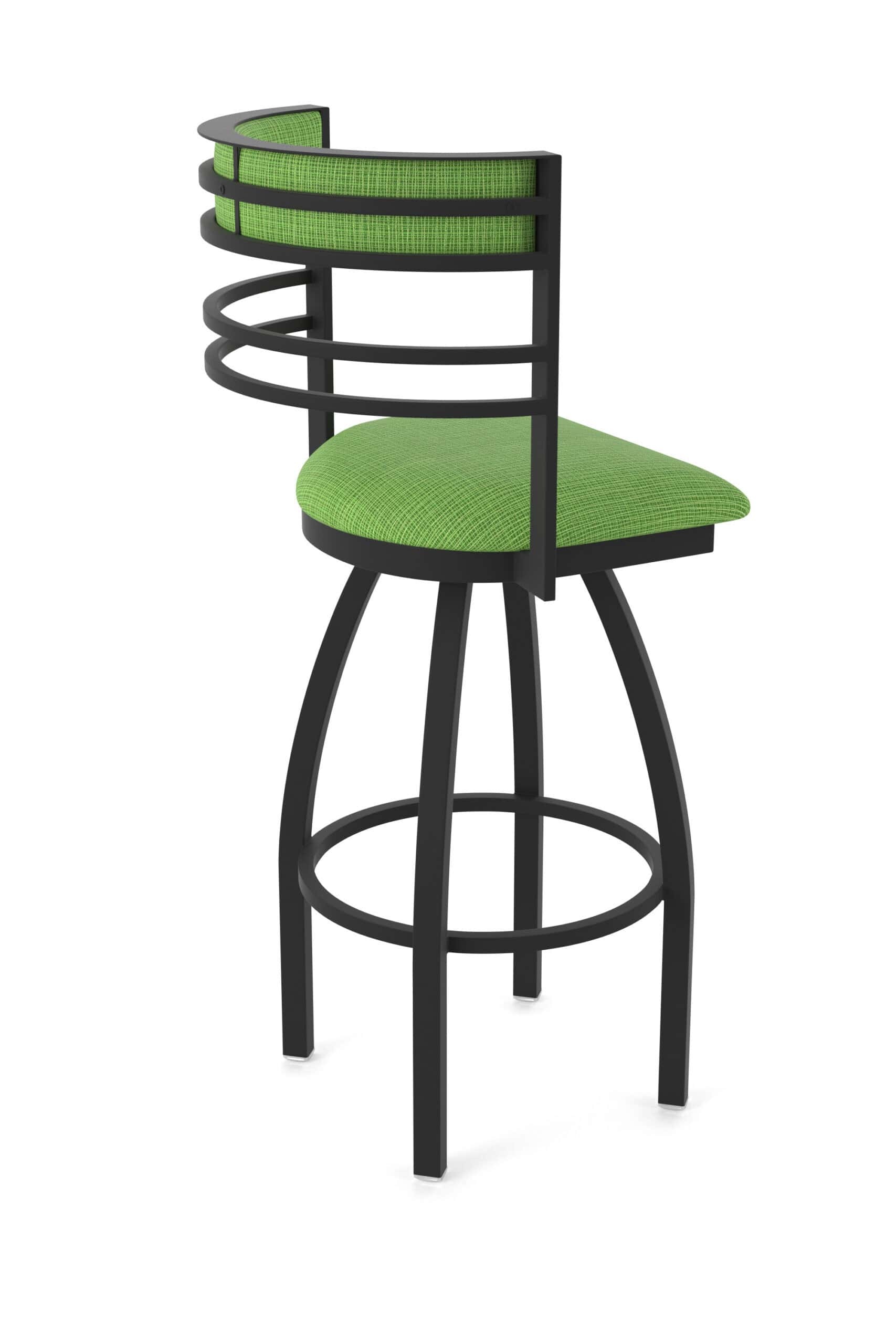 Experience the perfect blend of style and resilience with this bar stool. The black wrinkle finish offers a touch of sophistication, while the tall curved slat back provides excellent support. Customize the cushioned seat with your choice of premium vinyl and fabric options for a personalized touch. Enjoy smooth, consistent rotation thanks to the high-quality swivel mechanism, making this stool a standout piece of furniture.