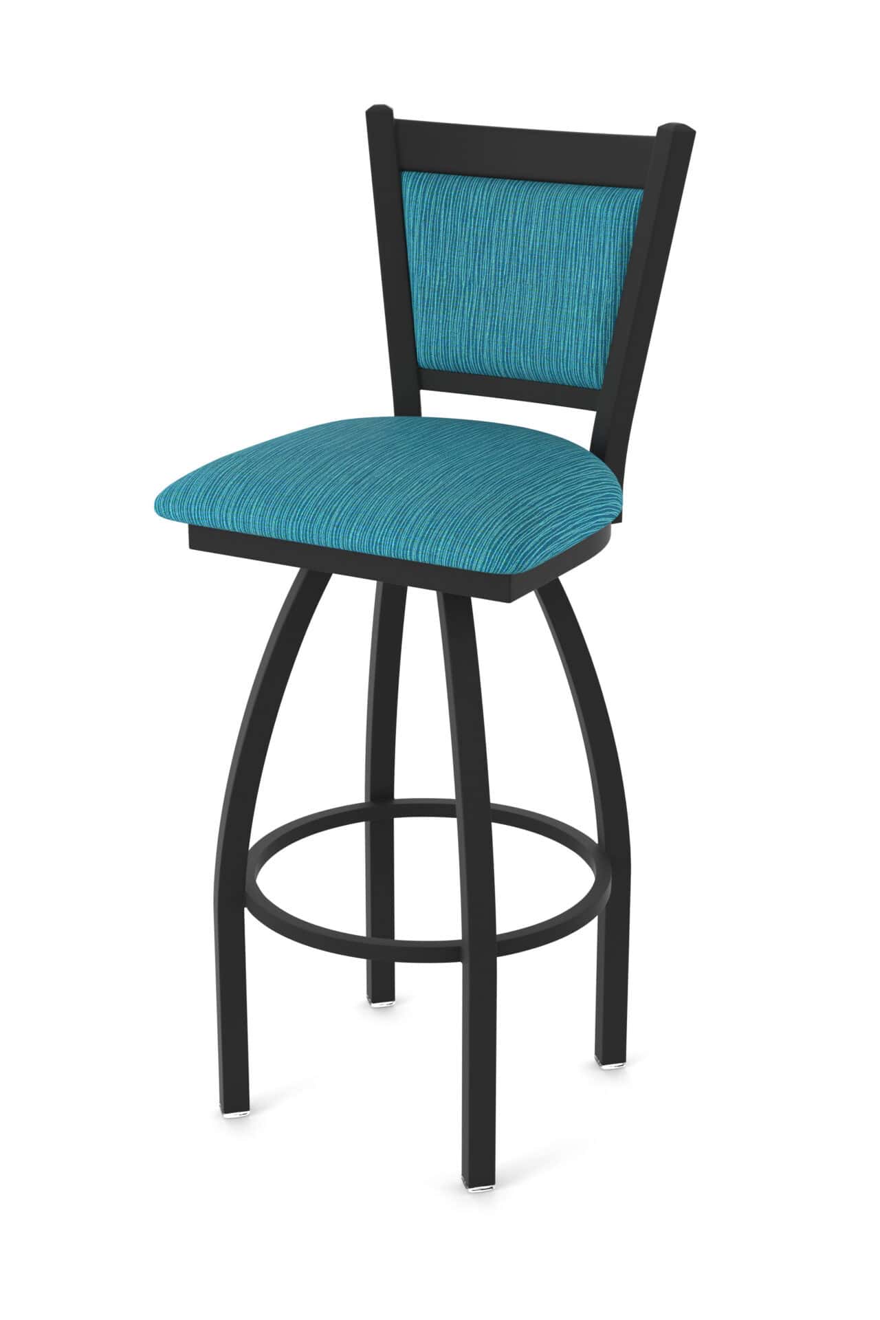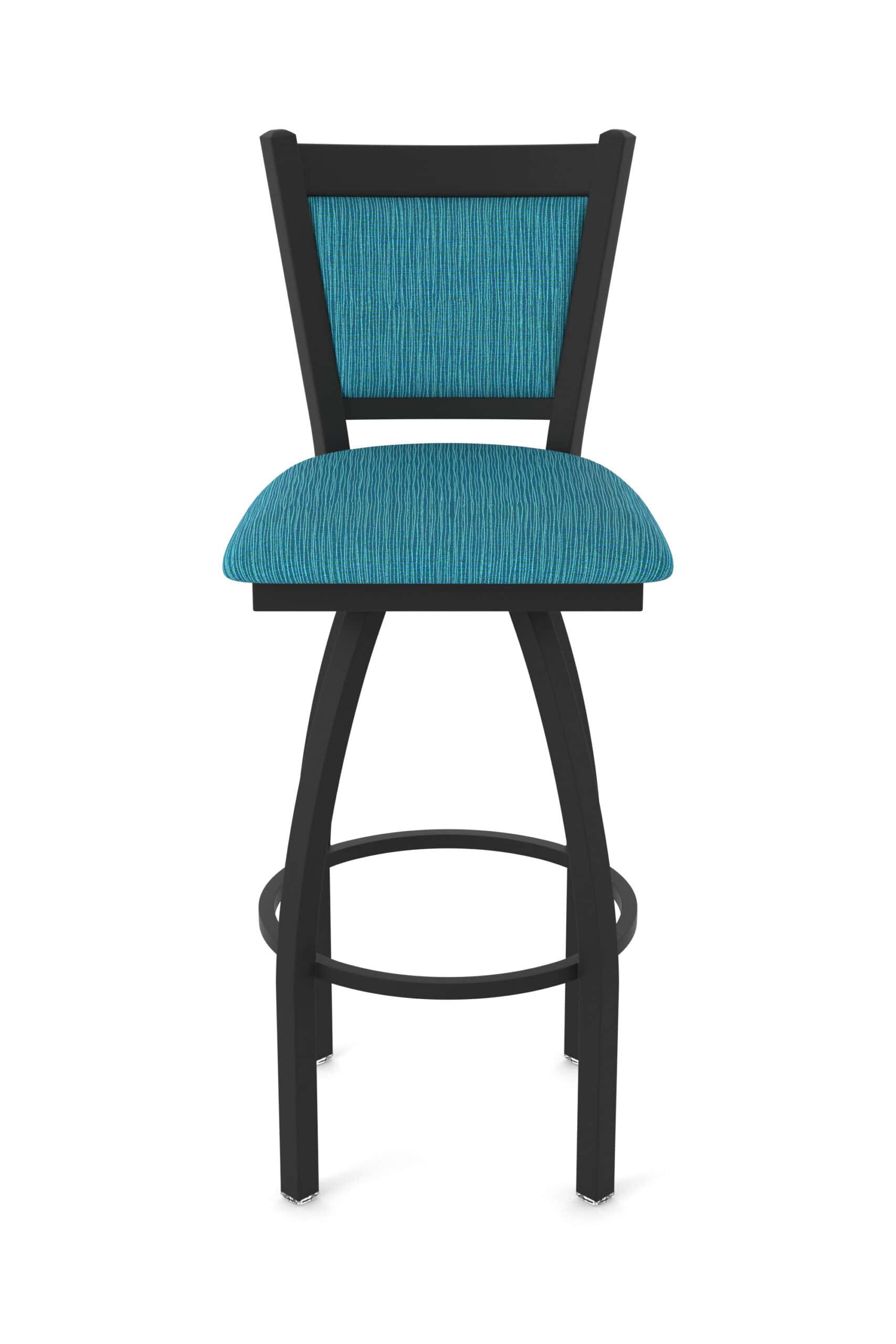 Enjoy the blend of style and functionality with this sturdy and stylish bar stool. The black wrinkle finish adds a touch of sophistication, while the Graph Tidal fabric on the 2.5-inch cushion seat and padded back provides superior comfort. The single-ring base offers extra stability and a classic look.